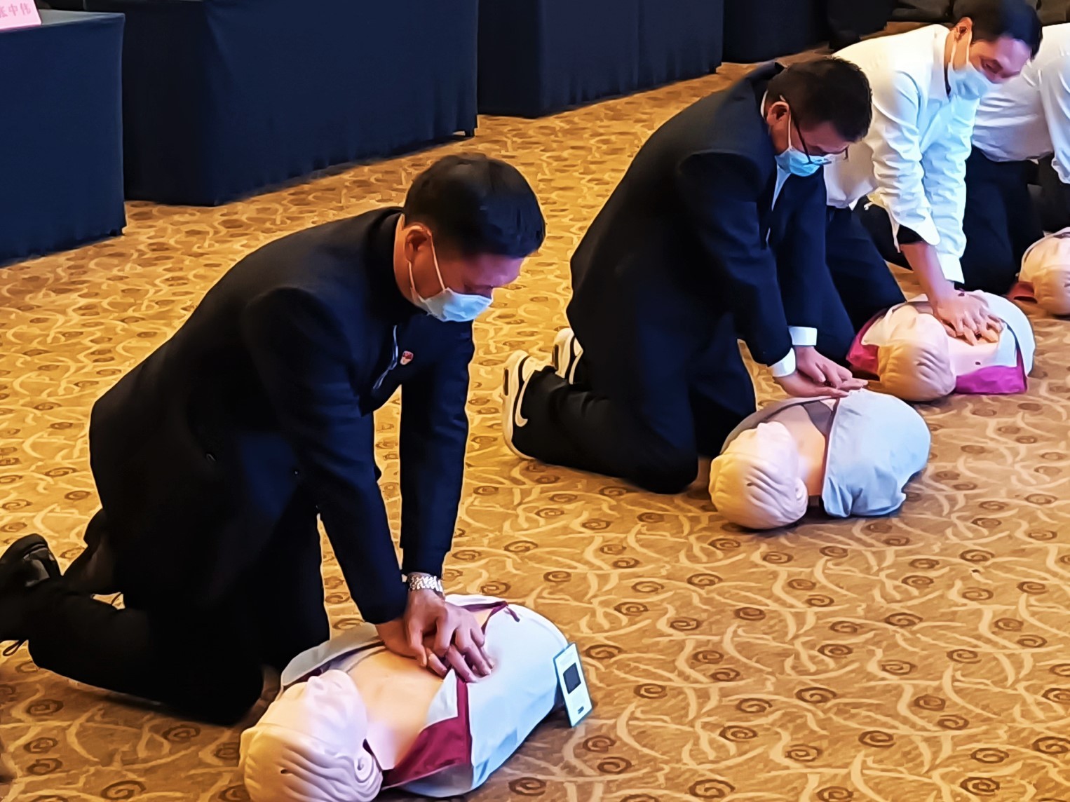 學(xué)以致用,鞏固認(rèn)知。通過培訓(xùn)講師的引導(dǎo),在場(chǎng)員工順利實(shí)現(xiàn)應(yīng)急救護(hù)理論與技能實(shí)操的聯(lián)動(dòng)。強(qiáng)運(yùn)動(dòng)量的力竭、十指緊扣的脹痛絲毫未能阻擋全員積極參與心肺復(fù)蘇術(shù)實(shí)操。跟隨節(jié)拍器的按壓節(jié)奏,從伊始的“眼神聚焦位置錯(cuò)誤”、“手臂發(fā)力部位不當(dāng)”、“未使人體模具腹部有效隆起”到滿分學(xué)員大量涌現(xiàn),實(shí)踐熱情度不斷高漲,技能掌握度顯著提升,為“危難時(shí)刻,我有準(zhǔn)備”奠基。