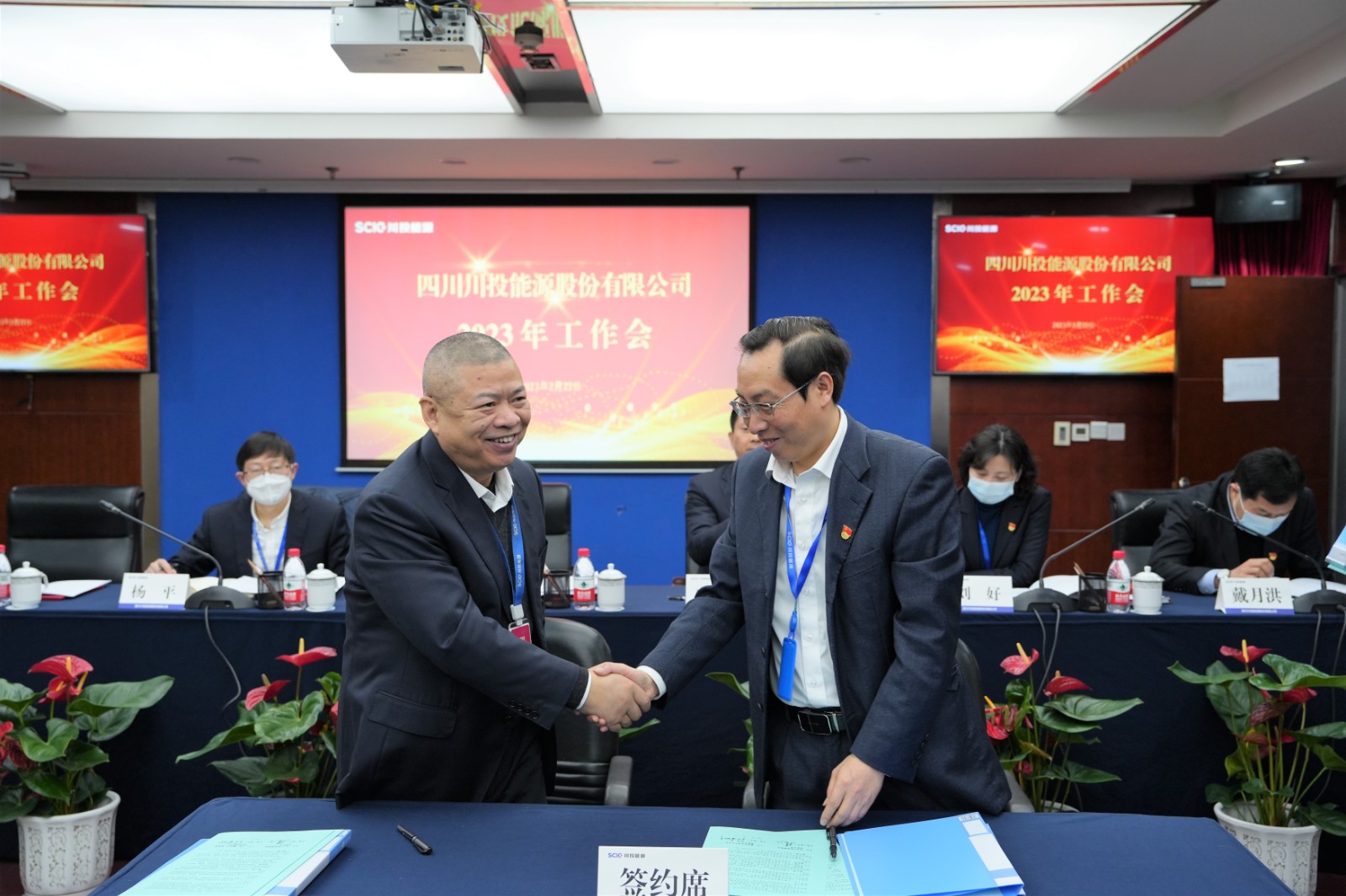 會上,楊洪與所屬企業(yè)負責人代表簽署了《經(jīng)營業(yè)績責任書》《安全生產(chǎn)、環(huán)境保護工作目標責任書》;冉蘭平宣讀2022年度優(yōu)秀員工表彰通報;黨委委員、副總經(jīng)理、總法律顧問楊平作2022年安全環(huán)保工作總結及2023年重點工作安排;黨委委員、財務總監(jiān)劉好傳達川投集團2023年工作會精神。