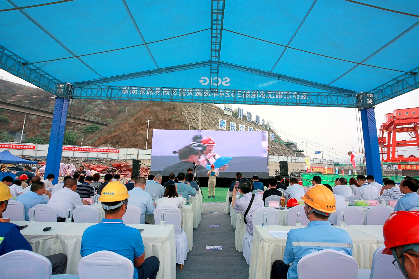 16日上午,在銀江水電站施工現(xiàn)場舉行了2024年地震災害及防汛應急演練。四川省發(fā)改委、省能監(jiān)辦、省自然資源廳、省水利廳、省應急管理廳、省地震局、省氣象局、省廣播電視局相關領導,雅安市、阿壩州、甘孜州、涼山州及攀枝花市直機關相關職能部門代表,省屬能源企業(yè)代表到現(xiàn)場觀摩指導。