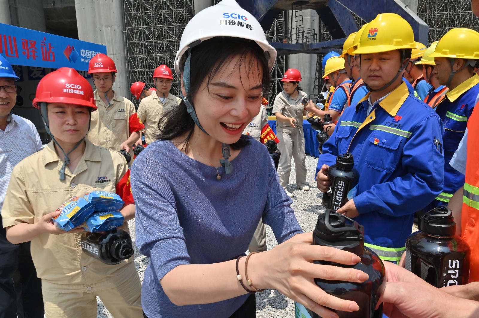 當日下午,朱莉一行對銀江水電站上游圍堰、基坑廠房壩段等防汛防災重點領域進行了現(xiàn)場檢查,聽取工程建設情況,并為銀江水電站工地“愛心驛站”進行揭牌,為一線建設者們送上夏季清涼物品和誠摯問候。