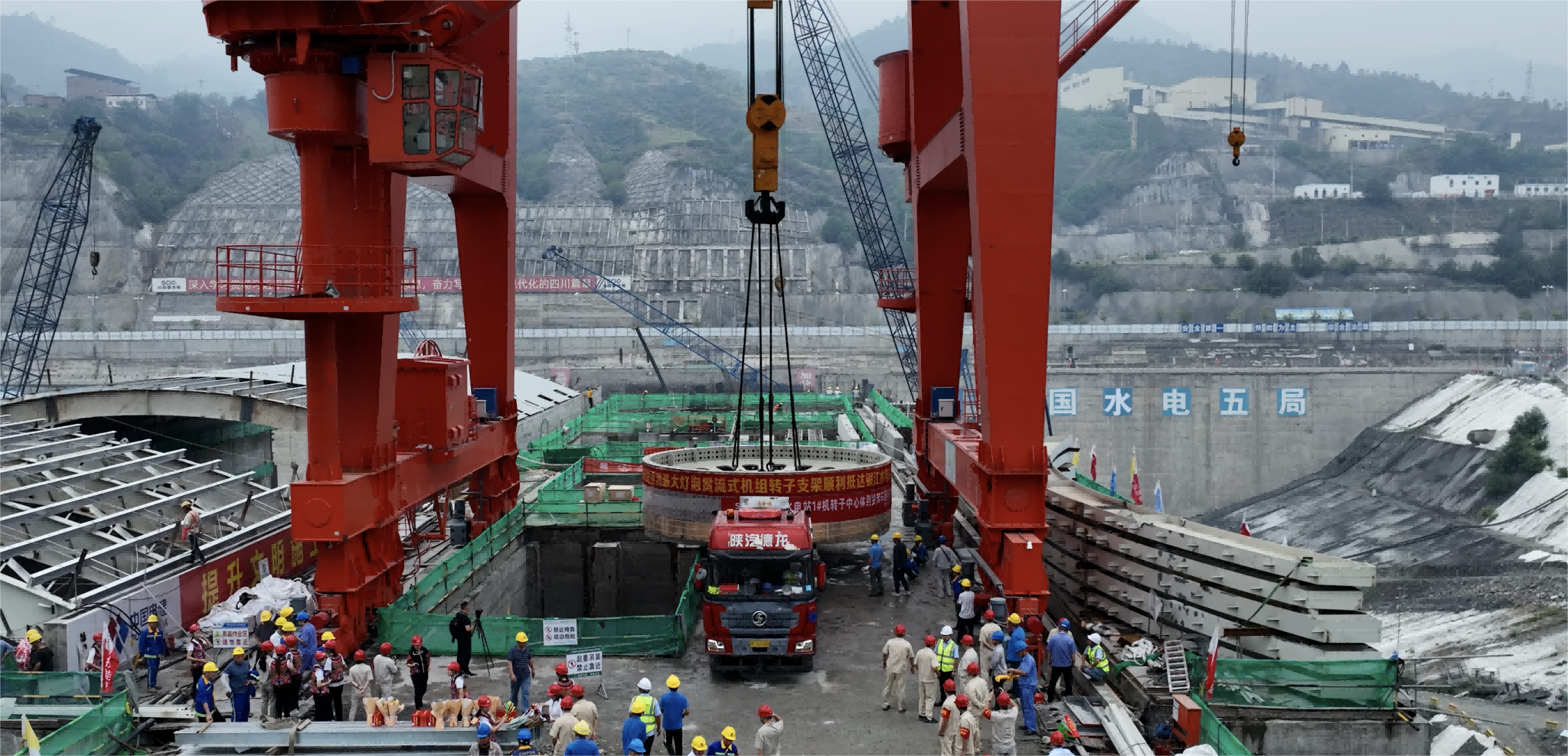 當日上午,攀水電公司和參建單位職工齊聚壩頂,共同迎接歷經(jīng)艱難、遠道而來的“重要成員”。據(jù)攀水電公司相關(guān)負責人介紹,該轉(zhuǎn)子支架具有設(shè)備巨大、運輸困難、作用重要三個特征。設(shè)備之“重”。轉(zhuǎn)子支架直徑達8米,高2米有余,重達百余噸,是目前亞洲最大的燈泡貫流式機組轉(zhuǎn)子支架。運輸之“難”。轉(zhuǎn)子支架于4月22日從江蘇鎮(zhèn)江碼頭開始運輸,先乘船再坐車,途中克服了大件超寬超限、持續(xù)降雨、道路塌方等諸多不利因素,多次調(diào)整運輸路線,風雨無阻,日夜兼程,歷時66天,跨越7個省份,全程3062公里,在沿途交警的護送下安全抵達。作用之“要”。轉(zhuǎn)子支架作為機組的核心部件,為磁軛一體圓盤式結(jié)構(gòu),中心體采用整圓鍛鋼與磁軛圈焊接組成,對轉(zhuǎn)子磁軛垂直度、磁軛圓度等加工精度要求極高,決定著機組的運行性能、運行效率和安全穩(wěn)定性。