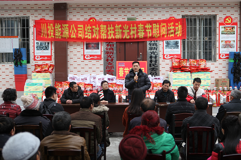 慰問現(xiàn)場(chǎng),冉書記代表公司黨委和全體員工,對(duì)新光村父老鄉(xiāng)親表示誠(chéng)摯的新春祝福和問候。冉書記指出,黨的十九大吹響了全面消滅貧困、實(shí)現(xiàn)小康號(hào)角,經(jīng)過(guò)幾年的努力,川投能源對(duì)口幫扶村面貌煥然一新,這得益于黨和國(guó)家的好政策,得益于扶貧干部和當(dāng)?shù)卮甯刹康墓餐?,得益于廣大鄉(xiāng)親父老的勤勞、智慧和汗水。接下來(lái),川投能源將繼續(xù)深入貫徹中央、省委及集團(tuán)公司精準(zhǔn)脫貧精神,創(chuàng)新扶貧工作思路,提高幫扶工作標(biāo)準(zhǔn),立足實(shí)際,努力為幫扶村群眾辦更多的實(shí)事、好事,以優(yōu)異的工作業(yè)績(jī)喜迎新中國(guó)成立70周年。