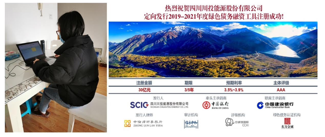 疫情期間,秦乙可需要每天不定時守在電腦前,沒有周內周末之分,領導、同事、事務所、中介、銀行等等,什么時候需要資料、數據,她便及時按要求提供。無論是私募債注冊資料提供,還是月度報表數據上報與財務分析,或者川投能源資金結算中心運營的推進、2019年度審計資料的提供,均通過遠程辦公方式順利完成。