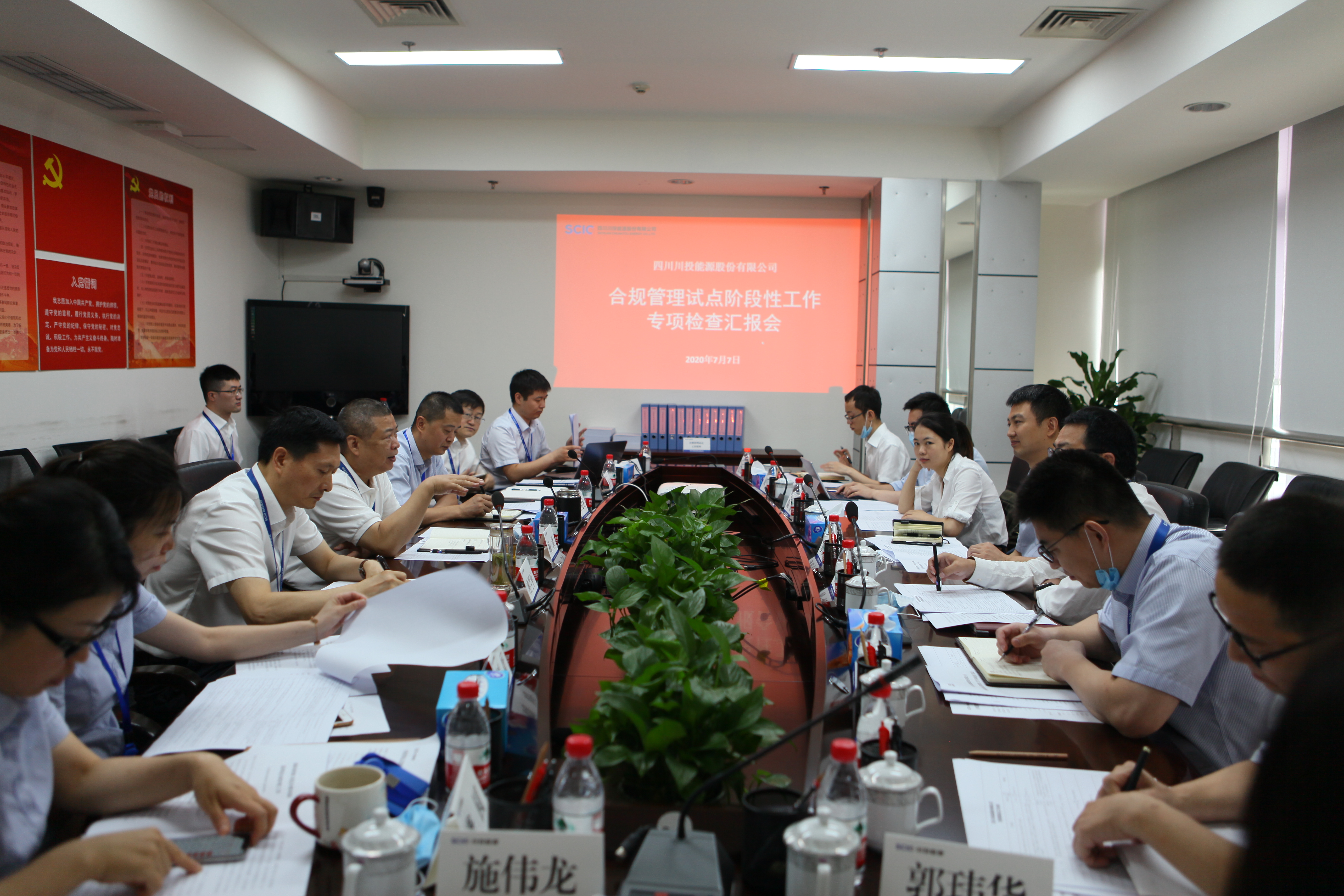 7月7日,集團公司黨委委員、副總經(jīng)理羅永平一行赴川投能源檢查合規(guī)管理試點工作,集團公司總法律顧問、法律事務(wù)部部長楊帆,法律事務(wù)部副部長張軻,法律事務(wù)部和資產(chǎn)經(jīng)營管理部等人員陪同檢查。