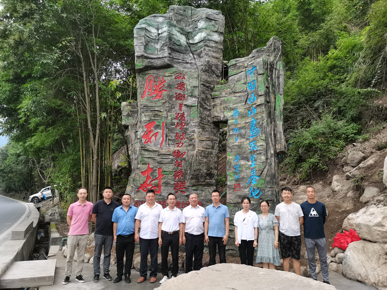 根據(jù)金口河區(qū)對大峽谷景區(qū)的統(tǒng)籌規(guī)劃,川投能源立足當(dāng)?shù)氐乩硖攸c(diǎn),用心打造旅游產(chǎn)業(yè),在樂漢高速金口河出口(原新光村枕頭壩處)援建山門一座,作為大峽谷景區(qū)入口和旅游指引牌,吸引游客入村體驗(yàn)鄉(xiāng)村旅游。9月9日,楊洪一行到達(dá)金口河區(qū),不顧舟車勞頓,立即前往勝利村山門處,舉行“川投能源捐建”山門石碑揭牌儀式。