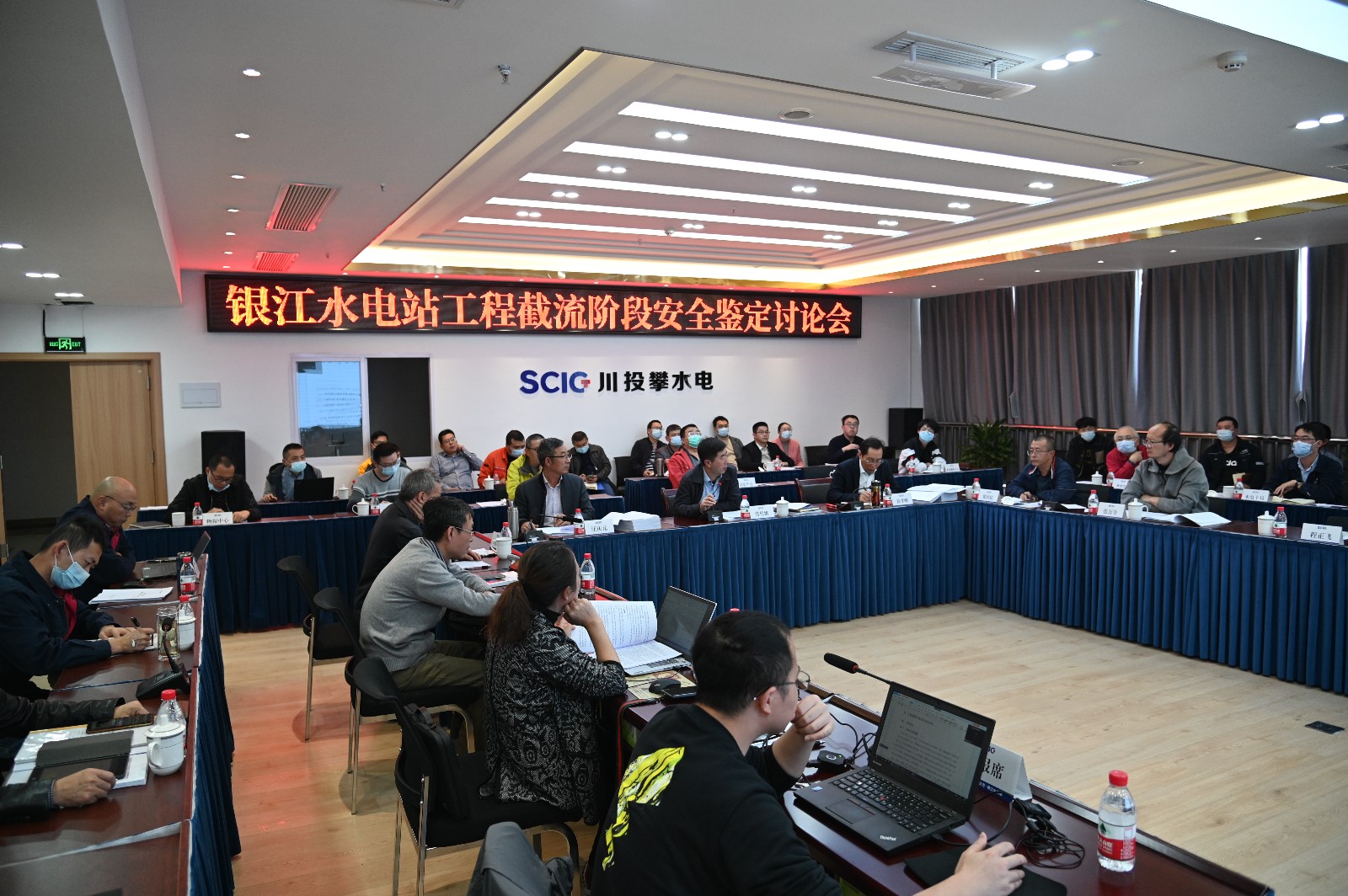 11月26日上午,專家組組長常作維在公司2620會議室主持召開了銀江水電站工程截流專項(xiàng)安全鑒定通報(bào)會,攀水電公司領(lǐng)導(dǎo)、各部門負(fù)責(zé)人及各參建單位負(fù)責(zé)人共40余人參加會議。專家組聽取了各參建單位工作匯報(bào),與各參建單位進(jìn)行了充分地討論并交換意見,形成了銀江水電站工程截流專項(xiàng)安全鑒定報(bào)告,報(bào)告指出銀江水電站12月中旬具備工程截流條件,具體截流時(shí)間可根據(jù)水情預(yù)報(bào)和上游梯級電站控泄運(yùn)行情況擇機(jī)實(shí)施。