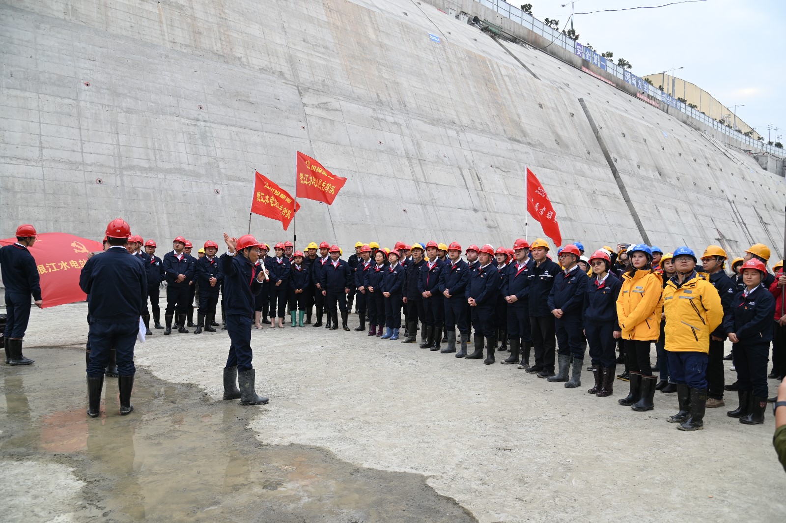 在銀江水電站導(dǎo)流明渠過(guò)流和大江截流來(lái)臨之際,為持續(xù)推進(jìn)“我為群眾辦實(shí)事”活動(dòng)走深走實(shí),不斷激勵(lì)黨員同志不忘初心、奮勇前進(jìn),12月2日,攀水電公司黨總支組織開展了“我為銀江辦實(shí)事”主題黨日活動(dòng)。川投能源副總經(jīng)理、攀水電公司黨總支書記、董事長(zhǎng)徐孝剛在導(dǎo)流明渠基坑講授微黨課,并帶領(lǐng)大家開展工地大掃除,公司全體黨員、職工及各參建單位聯(lián)建支部黨員共100余人參加本次活動(dòng)。