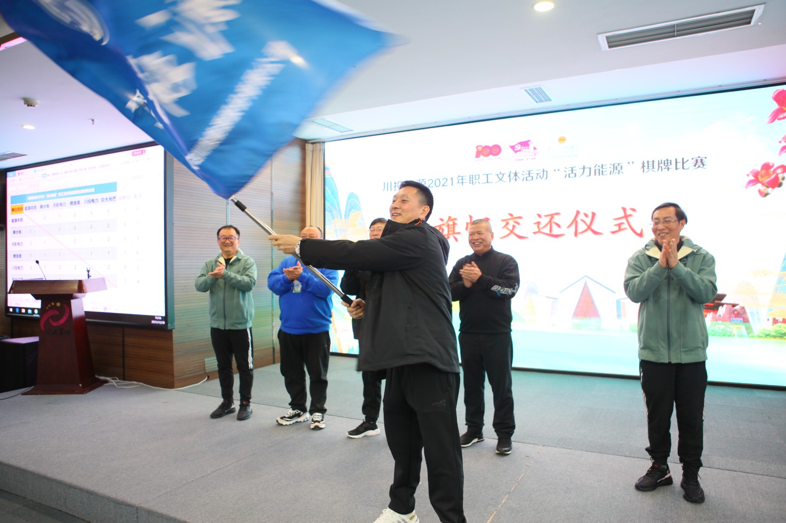 閉幕式上,進行了旗幟歸還儀式,川投能源黨委副書記、工會主席冉蘭平揮舞著旗幟熱情高呼“活力能源,明年再見!”,并帶領大家共同唱響《年輕的朋友來相會》。2021年川投能源“活力能源”職工文體活動圓滿落下帷幕,新的一年川投能源一定會在川投集團的正確領導下,起好步,開新局,以優(yōu)異的成績喜迎黨的二十大勝利召開。