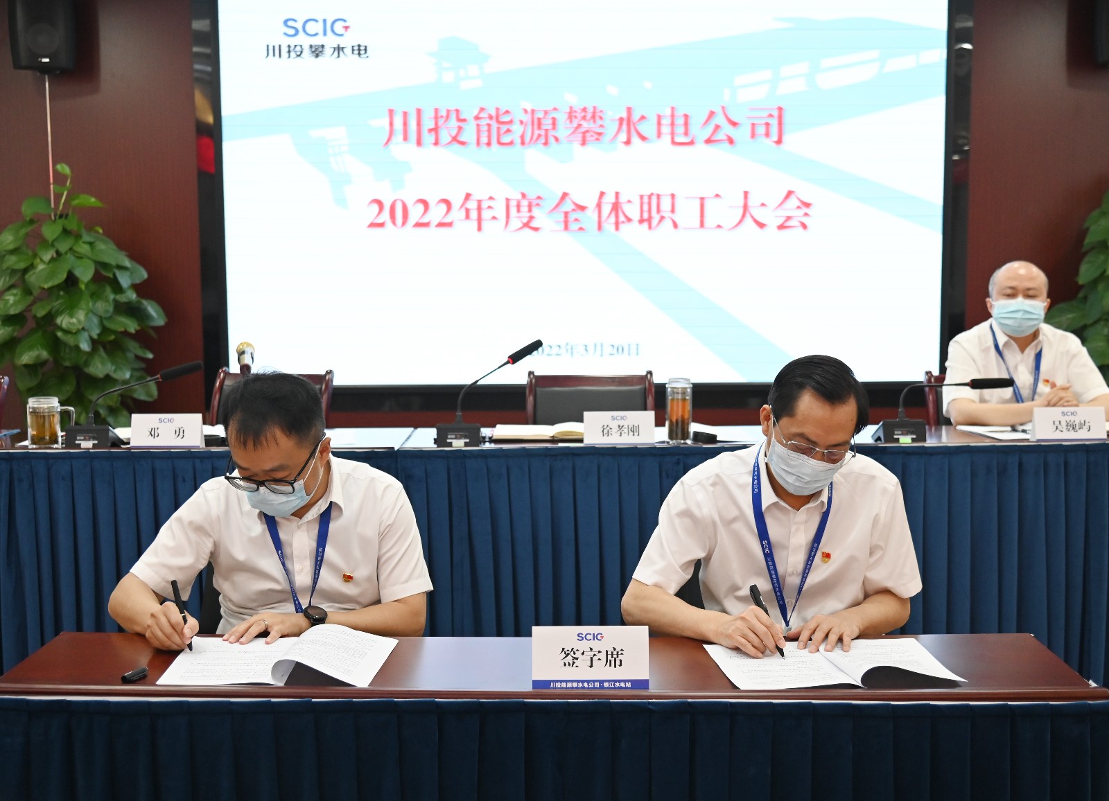 大會最后審議通過了《工資集體合同》和《女職工權益保護專項合同》,川投能源副總經(jīng)理、公司黨總支書記、董事長徐孝剛分別與工會主席鄧勇、女工委員高力梅簽署了上述集體合同,充分體現(xiàn)了公司高度重視員工福利和女職工切身利益,凝聚了人心,振奮了精神,鼓舞了士氣,堅定了信念,為切實推動銀江水電站工程建設和公司高質(zhì)量發(fā)展貢獻了工會力量。