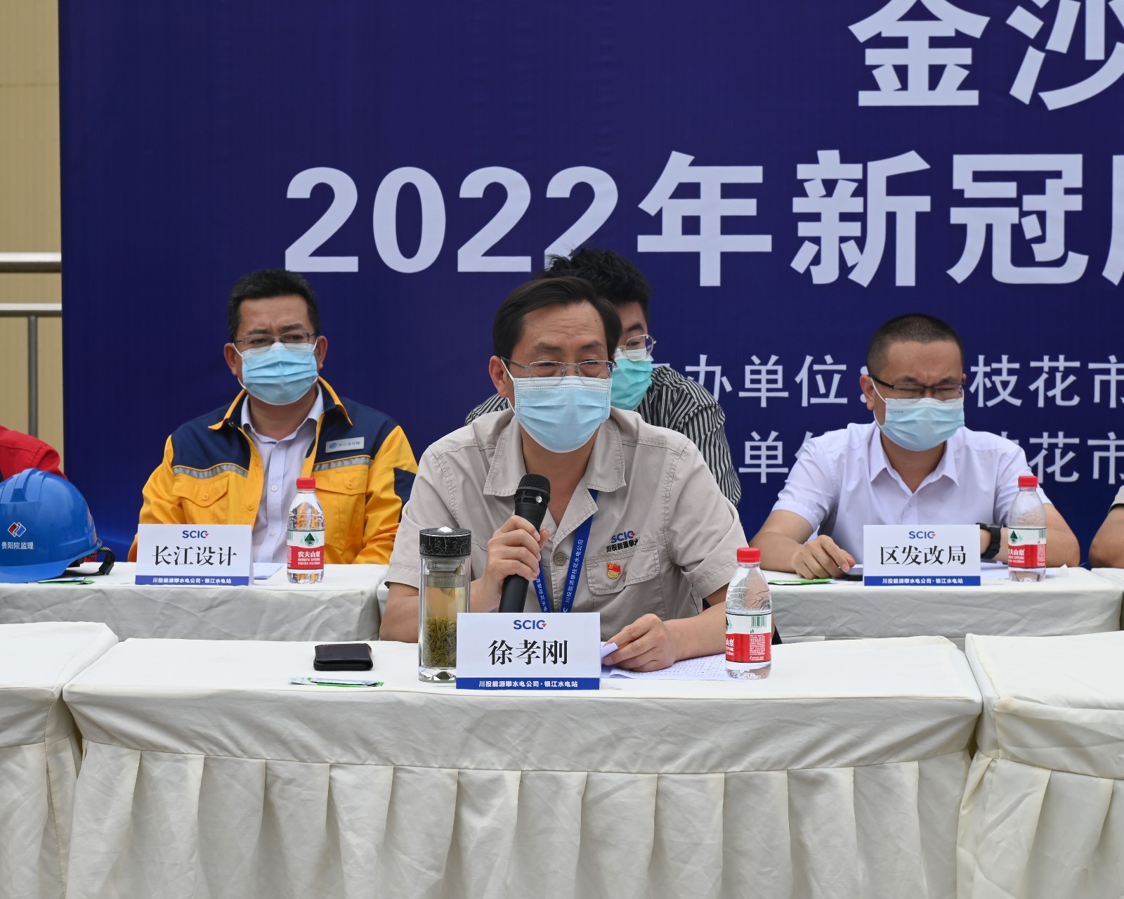為進一步做好公司新冠疫情防控工作,強化和提高公司與各參建單位的應(yīng)急處置意識和能力,5月21日上午,攀水電公司與東區(qū)疾控中心在銀江水電站35kV施工變電站聯(lián)合組織開展新冠疫情防控應(yīng)急演練。演練由攀水電公司黨總支委員、總經(jīng)理、疫情防控領(lǐng)導(dǎo)小組副組長吳巍嶼主持,川投能源副總經(jīng)理、攀水電公司黨總支書記、董事長、疫情防控領(lǐng)導(dǎo)小組組長徐孝剛擔任演練總指揮,攀枝花市東區(qū)政府副區(qū)長王靜,東區(qū)人大黨組副書記、副主任陳康,東區(qū)有關(guān)部門負責人和公司疫情防控領(lǐng)導(dǎo)小組主要成員及各參建單位負責人到現(xiàn)場觀摩演練。