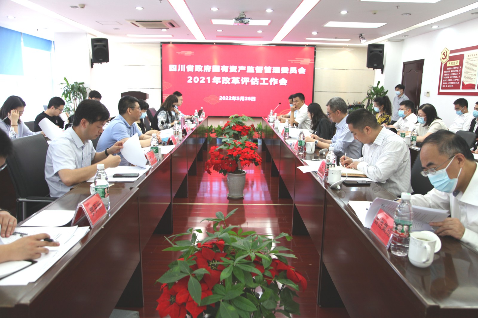 2022年5月26日上午,省國資委改革處處長肖代勇率評(píng)估組在交大光芒生產(chǎn)基地多功能會(huì)議室召開2021年川投集團(tuán)改革評(píng)估工作會(huì)。此次評(píng)估由省國資委會(huì)同中智咨詢公司組成評(píng)估組,旨在深入了解省屬企業(yè)及下屬天府綜改企業(yè)各項(xiàng)任務(wù)進(jìn)展情況、對(duì)各省屬企業(yè)2021年度國企改革三年行動(dòng)落實(shí)情況進(jìn)行客觀評(píng)估。國資委改革處副處長梅潔、企業(yè)領(lǐng)導(dǎo)人員管理處副處長王瑾、黨建工作處劉濤等出席評(píng)估會(huì)。川投集團(tuán)總經(jīng)理助理、戰(zhàn)略投資部部長田傳平率集團(tuán)公司相關(guān)部門負(fù)責(zé)人參會(huì),川投集團(tuán)所屬“天府綜改”企業(yè)智勝集成和交大光芒一并參加接受評(píng)估,“雙百行動(dòng)”企業(yè)華西牙科、“科改示范”企業(yè)宏明電子相關(guān)領(lǐng)導(dǎo)以及川投能源黨委委員、總會(huì)計(jì)師劉好、董事會(huì)秘書魯晉川列席評(píng)估會(huì)。