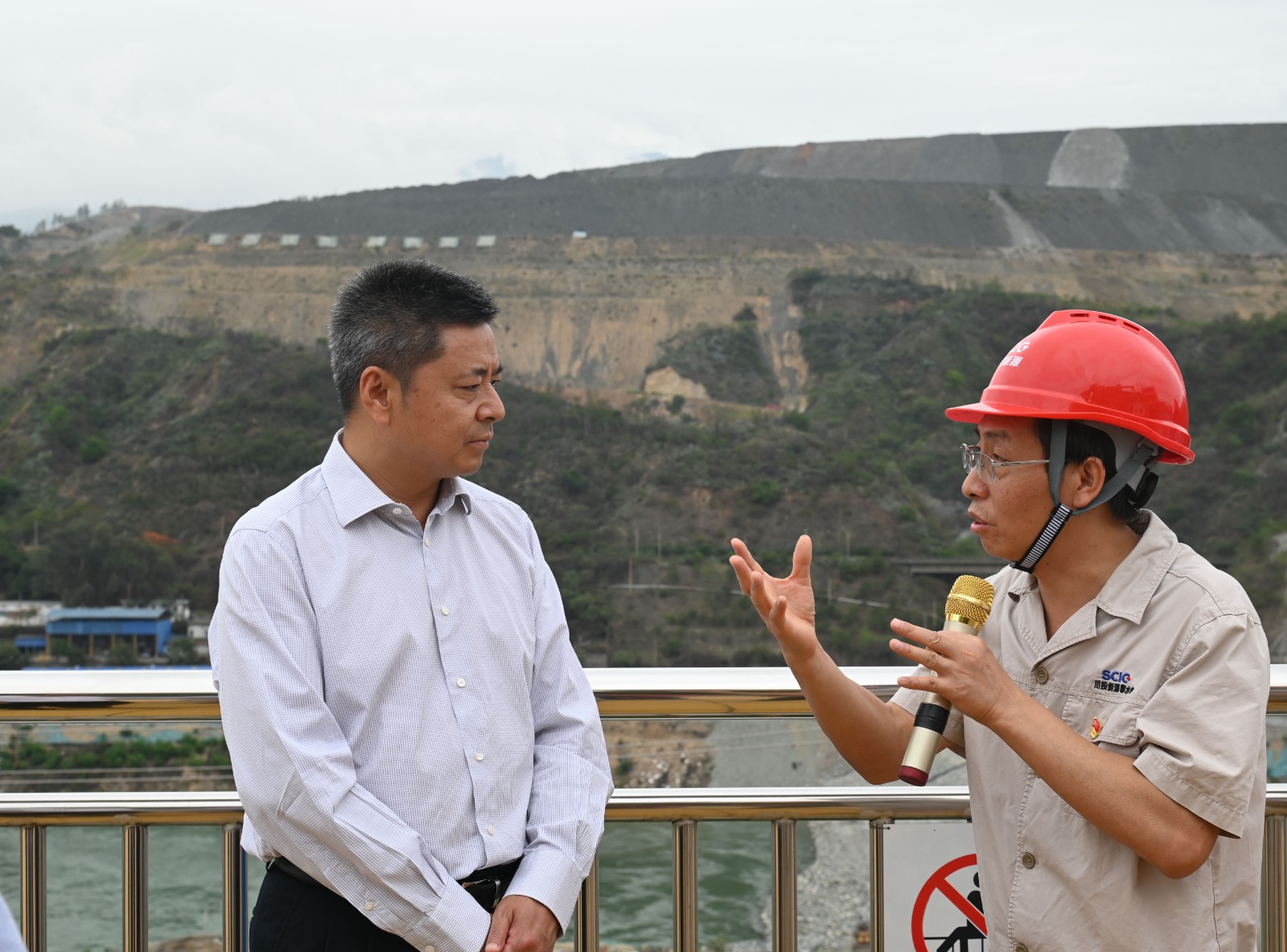 在施工變電站觀景平臺,徐孝剛詳細匯報了銀江水電站工程建設(shè)、防洪度汛、地災(zāi)隱患排查治理、防洪搶險應(yīng)急演練及庫區(qū)防護工程施工等方面工作情況,重點介紹了二期基坑、銀江大橋及庫區(qū)防護工程等重要部位汛期注意事項,仔細講解了各部位防洪度汛應(yīng)急處置流程。