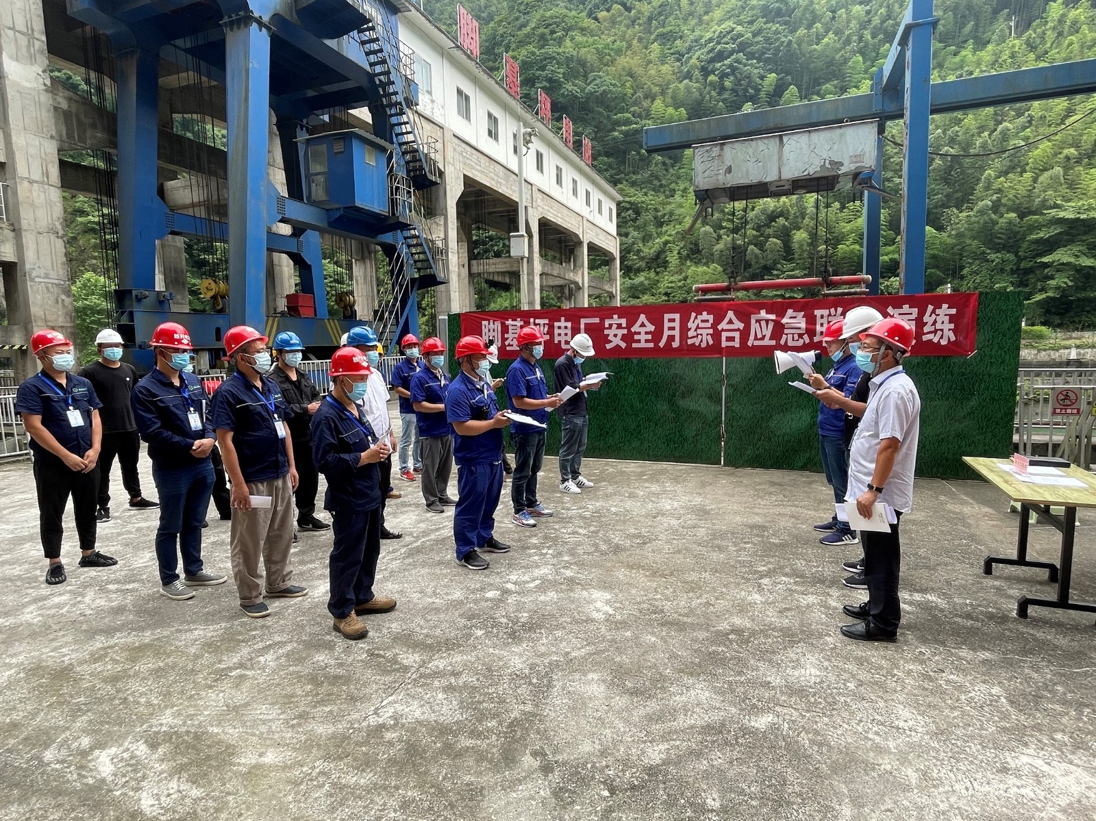 本次演練聯(lián)合企地共建單位“一鎮(zhèn)、一企”──天全縣喇叭河鎮(zhèn)人民政府和勝利電廠,從地震避險、兩種外接電源消失、地質災害逃生三個方面開展。演練指揮組由喇叭河鎮(zhèn)副鎮(zhèn)長徐志鵬、腳基坪電廠廠長趙兵、勝利公司副總經理黃倫組成。
