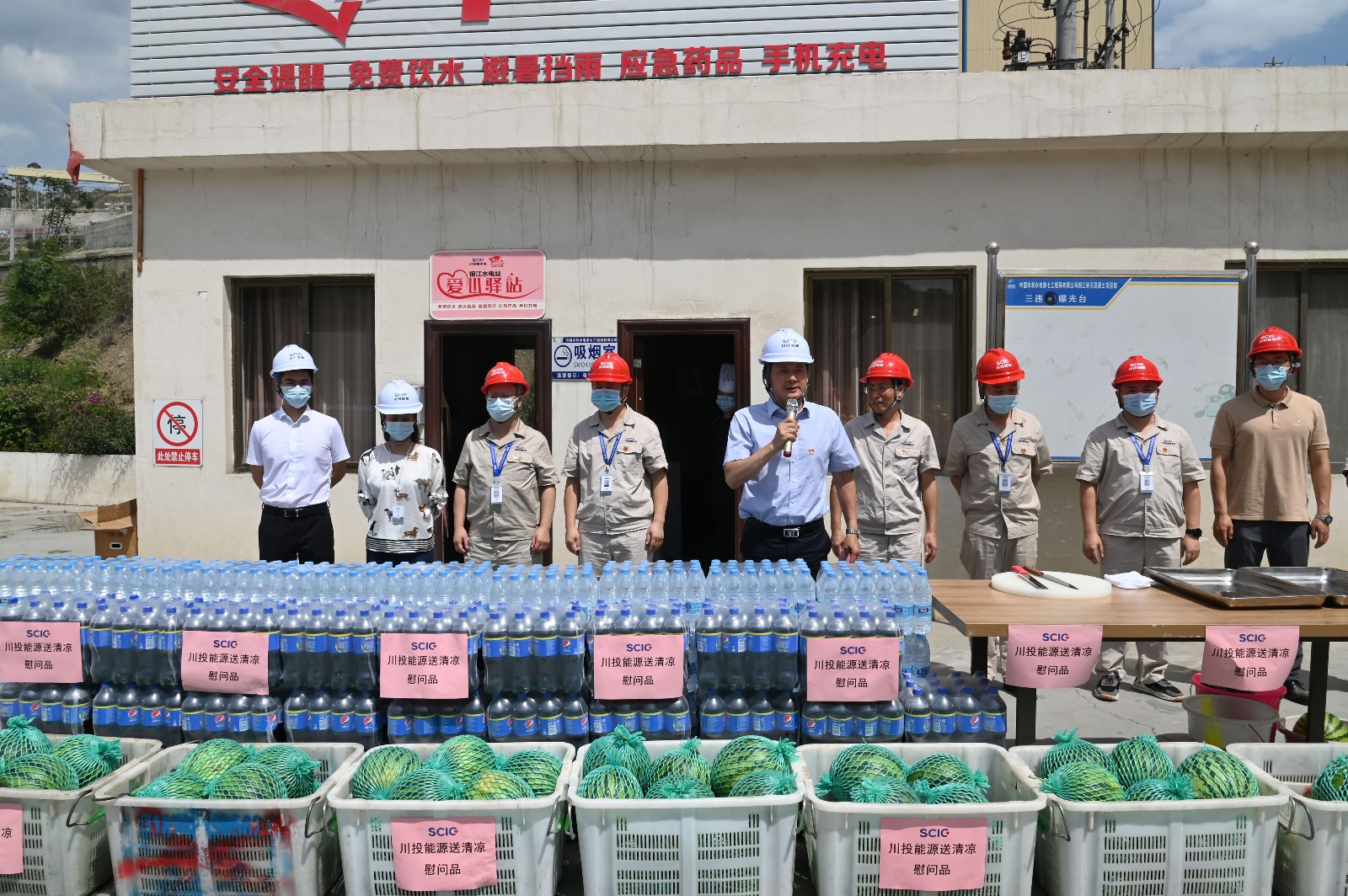 夏至剛過,高溫來襲,攀枝花已進(jìn)入了高溫酷暑季節(jié)。6月22日下午,為落實(shí)全國(guó)總工會(huì)《關(guān)于做好2022年職工防暑降溫工作的通知》要求,受川投能源黨委書記、副董事長(zhǎng)、總經(jīng)理?xiàng)詈榈奈校ㄍ赌茉袋h委副書記、工會(huì)主席冉蘭平一行頂著烈日高溫,專程到銀江水電站工地看望慰問堅(jiān)守在高溫酷暑中的一線建設(shè)者。川投能源人力資源部經(jīng)理王歆、紀(jì)檢工作部陳一鳴及攀水電公司領(lǐng)導(dǎo)、志愿者服務(wù)隊(duì)參加慰問。