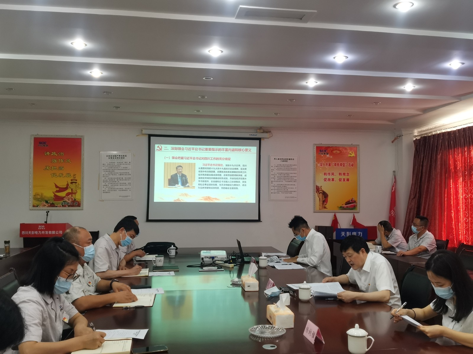 為迅速落實上級黨委有關學習宣傳貫徹的部署和要求,7月8日,川投能源黨委委員、副總經理、總法律顧問楊平率隊赴天彭電力,專題宣講習近平總書記來川視察重要指示精神暨省第第二次黨代會精神。川投能源審計部副經理楊納雅、川投能源黨群工作部李睿參加宣講活動。