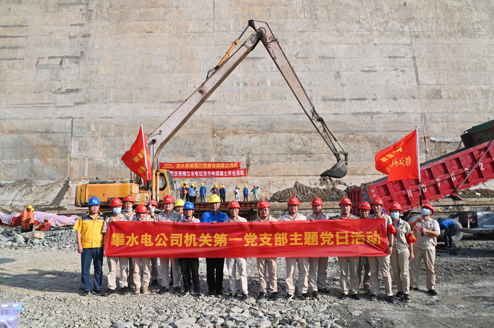 按照銀江水電站“決戰(zhàn)四季度、大干一百天”活動(dòng)安排,計(jì)劃于9月29日下午開始主體工程泄水系統(tǒng)消力池首倉混凝土澆筑。為服務(wù)該項(xiàng)重要節(jié)點(diǎn)目標(biāo)的順利實(shí)現(xiàn),9月29日,由機(jī)關(guān)第一黨支部牽頭,邀請聯(lián)建支部部分黨員,到銀江水電站施工現(xiàn)場,開展了主題為“服務(wù)消力池首倉混凝土澆筑,在決戰(zhàn)100天活動(dòng)中貢獻(xiàn)支部力量,以實(shí)際行動(dòng)喜迎二十大”的主題黨日活動(dòng)。