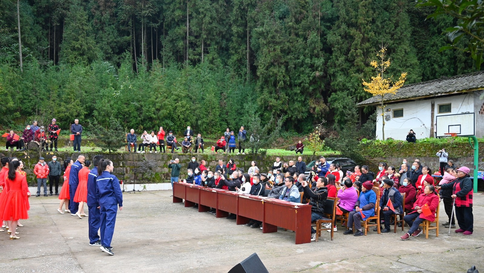 活動當天,文山村民不顧寒冬凜冽的冷風,早早來到現(xiàn)場等待。在音樂快板《向著第二個百年奮斗目標,前進!》中拉開了宣講活動的序幕,村民們在富有感染力的快板聲中,再一次重溫了黨的二十大精神要點,文山村民表演的擁軍花鼓和快板《二十大精神譜新篇》讓大家對中國共產(chǎn)黨為解放全中國所付出的犧牲和努力,心懷感激,并對美好的未來生活充滿無限期待。最后,全體宣講隊員用一曲歌伴舞《領(lǐng)航》將此次表演推向了高潮。全體村民為宣講隊員精彩的演出熱烈鼓掌,也為這場走進鄉(xiāng)村的宣講活動畫上了圓滿的句號。