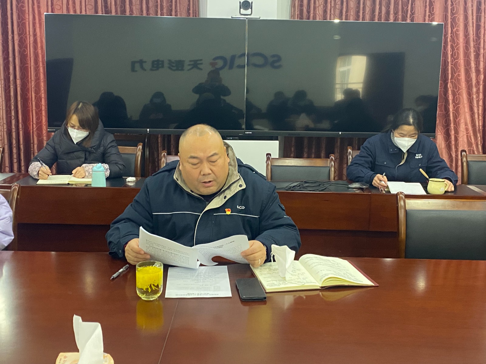 為全面掀起學(xué)習(xí)宣傳貫徹黨的二十大精神熱潮,推動黨的二十大精神走深走實,12月20日,天彭電力黨總支召開2022年第12次中心組學(xué)習(xí)(擴大)會,黨總支書記、董事長、總經(jīng)理陳忠作黨的二十大精神專題宣講報告,公司領(lǐng)導(dǎo)班子、黨員干部、關(guān)鍵崗位人員參加學(xué)習(xí)。
