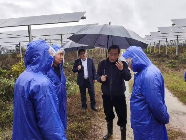 徐孝剛一行首先來(lái)到桂平光伏電站光伏現(xiàn)場(chǎng),冒著大雨檢查了光伏電站一期小龍蝦養(yǎng)殖基地、二期園藝基地和澳洲淡水龍蝦養(yǎng)殖基地等農(nóng)光互補(bǔ)項(xiàng)目的安全運(yùn)行情況;隨后來(lái)到桂平升壓站,在中控室聽(tīng)取了光伏電站2022年整體運(yùn)行狀況和發(fā)電量數(shù)據(jù)、安全管理、農(nóng)業(yè)發(fā)展等情況匯報(bào),徐孝剛強(qiáng)調(diào),電站生產(chǎn)運(yùn)行人員一定要嚴(yán)格按照國(guó)家安全生產(chǎn)法及電站安全管理制度的要求執(zhí)行、落實(shí)安全生產(chǎn)工作,牢牢守住安全生產(chǎn)的底線(xiàn)和紅線(xiàn),確保電站安全管理可控、在控,穩(wěn)定運(yùn)行。