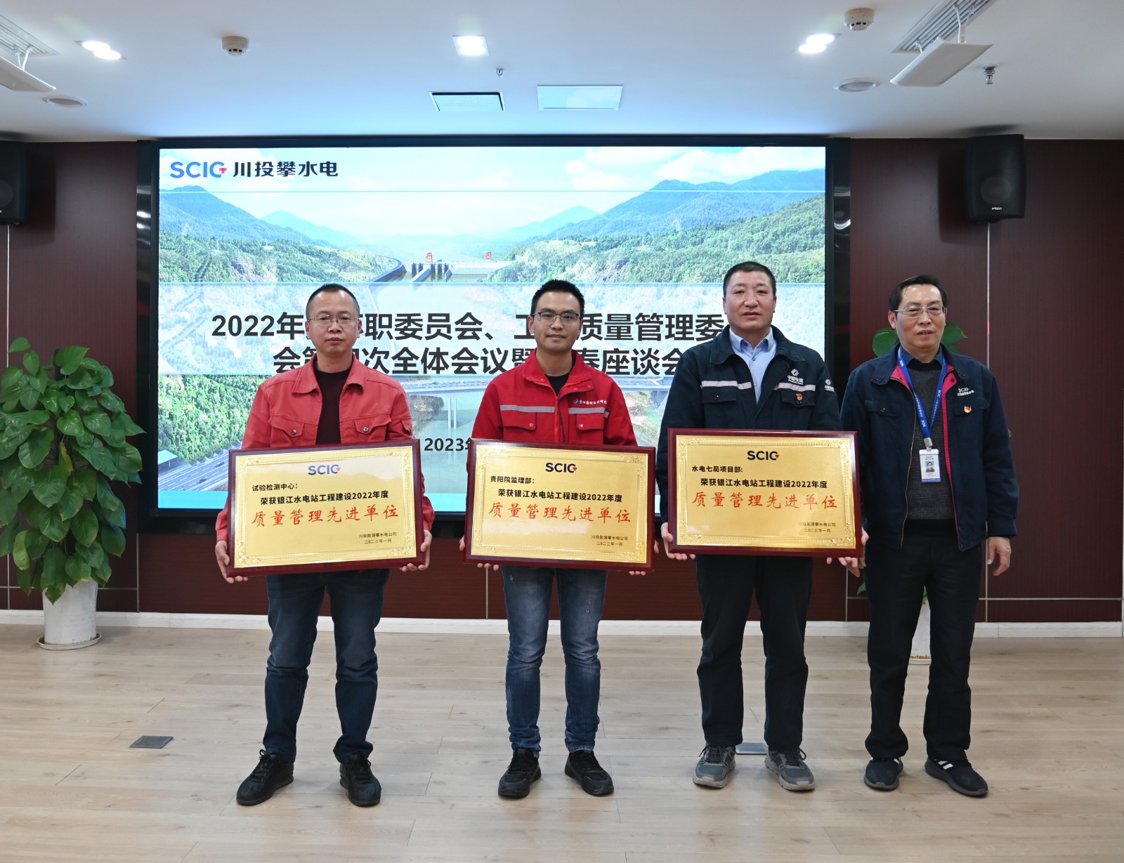 會(huì)上,公司黨總支副書記、董事會(huì)秘書、工會(huì)主席鄧勇宣讀了《關(guān)于表彰銀江水電站2022年度質(zhì)量管理先進(jìn)單位、先進(jìn)集體和先進(jìn)個(gè)人的通報(bào)》文件,徐孝剛向榮獲2022年度質(zhì)量管理先進(jìn)單位的試驗(yàn)檢測(cè)中心、貴陽院監(jiān)理部、水電七局項(xiàng)目部頒發(fā)了獎(jiǎng)牌,公司總經(jīng)理助理兼工程管理部經(jīng)理嚴(yán)瑞平向先進(jìn)集體代表頒發(fā)了獎(jiǎng)牌。吳巍嶼組織參會(huì)人員向獲獎(jiǎng)的單位、集體及個(gè)人表示了祝賀,要求其在今后的質(zhì)量管理工作中發(fā)揮好先鋒模范帶頭作用,促進(jìn)各參建單位共同提高質(zhì)量管理水平,把銀江水電站建設(shè)成“精品工程、樣板工程、陽光工程”。