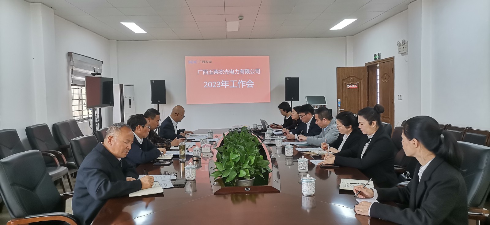 隨后,徐孝剛一行在桂平光伏電站升壓站二樓會議室召開了廣西農(nóng)光公司2023年工作會,會議由攀新能源公司公司、廣西農(nóng)光公司財(cái)務(wù)總監(jiān)王俊森主持,公司全體員工(兼職)、運(yùn)維單位代表參加會議。會議學(xué)習(xí)傳達(dá)了川投集團(tuán)、川投能源、攀新能源公司2023年工作會精神;覃鳳荏作了廣西農(nóng)光公司《2022年工作總結(jié)及2023年工作計(jì)劃》的報(bào)告,重點(diǎn)匯報(bào)了2022年度主要指標(biāo)完成情況、主要工作舉措及成效、存在的問題和困難以及2023年工作打算等;王俊森代表公司領(lǐng)導(dǎo)班子作廉潔從業(yè)公開承諾;公司主要領(lǐng)導(dǎo)分別與部門代表簽訂了2023年《“雙廉”責(zé)任書》《部門目標(biāo)責(zé)任書》。