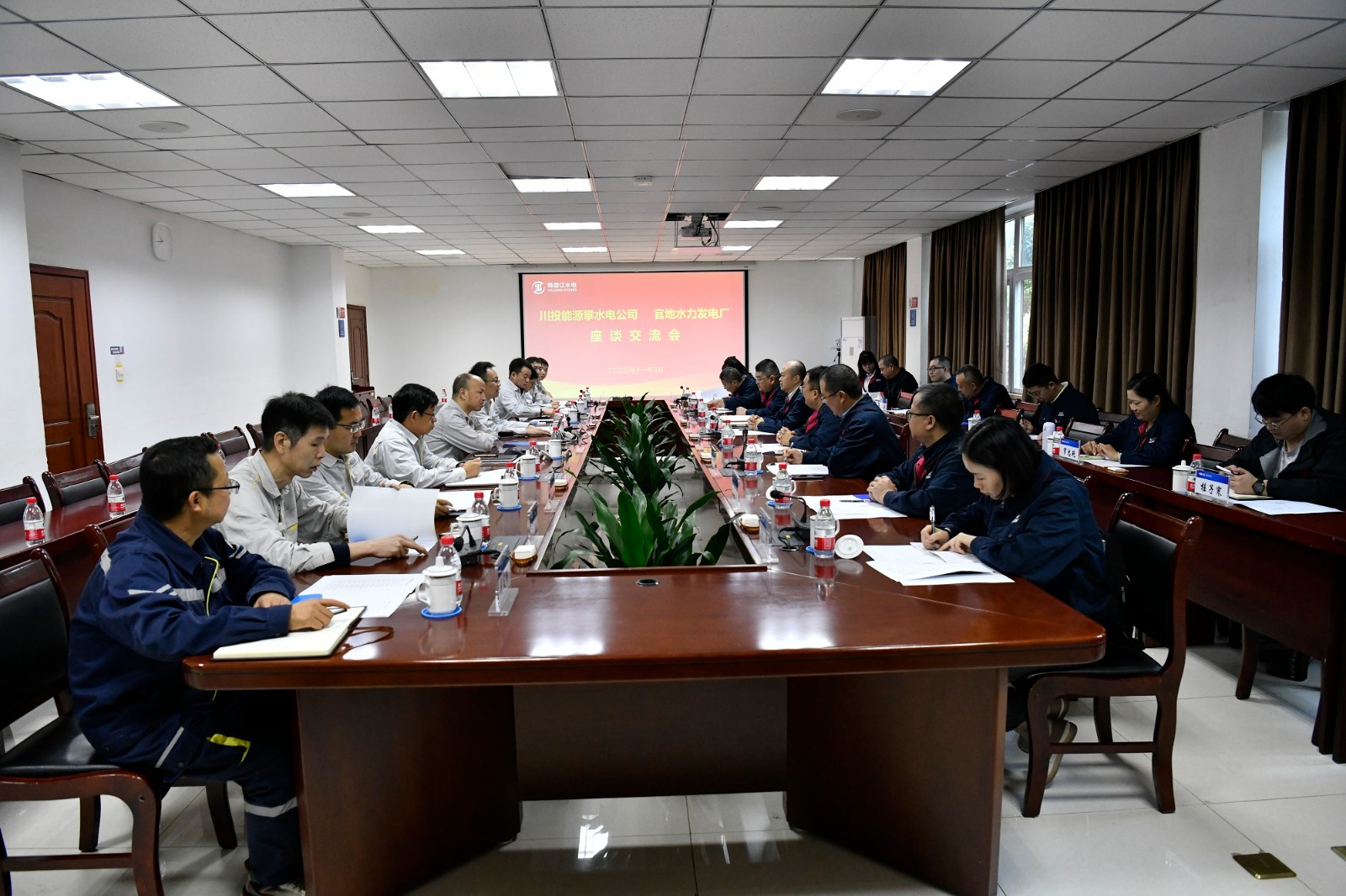 11月3日,調(diào)研組一行赴官地水電站開展調(diào)研,在電廠副廠長(zhǎng)劉偉及相關(guān)部門負(fù)責(zé)人等陪同下,實(shí)地參觀了電廠的地下廠房、中控室、展覽廳等地并召開了交流座談會(huì),會(huì)上,官地水電站各部門就電廠的生產(chǎn)運(yùn)維、技術(shù)創(chuàng)新、生產(chǎn)與黨建融合、安全管理、青年員工培養(yǎng)、營(yíng)地建設(shè)等方面分享了先進(jìn)的經(jīng)驗(yàn)并提供了寶貴的建議,此次交流學(xué)習(xí),開闊了員工視野,拓展了工作思路。吳巍嶼對(duì)官地水電站的熱情接待和專業(yè)指導(dǎo)表示感謝,并期待雙方能繼續(xù)加強(qiáng)交流,共謀合作機(jī)會(huì)。