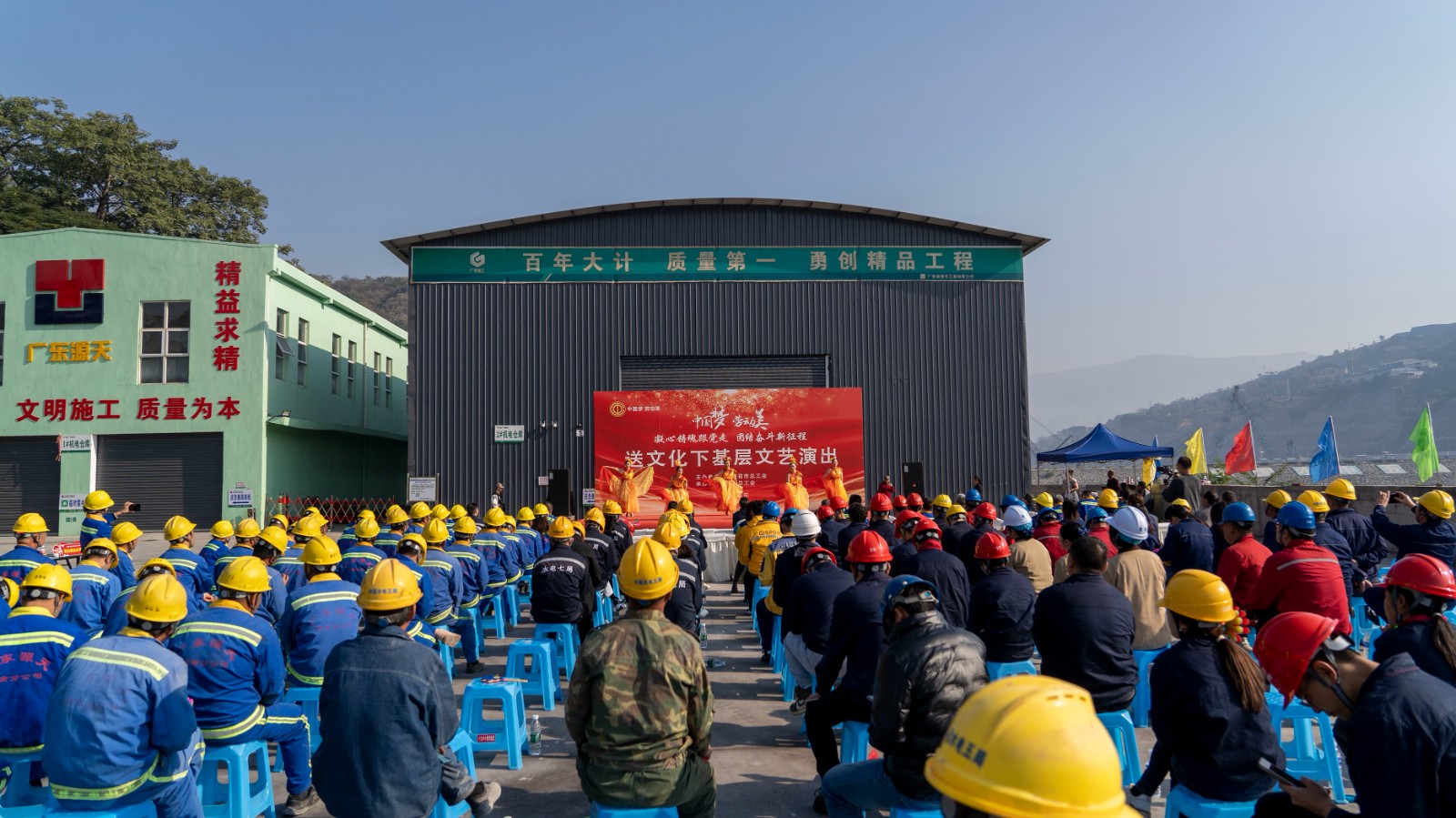 為深入學(xué)習貫徹黨的二十大精神、習近平總書記來川視察重要指示精神,11月29日上午,由攀枝花市總工會主辦,東區(qū)總工會、攀水電公司承辦的“中國夢·勞動美——凝心鑄魂跟黨走 團結(jié)奮斗新征程”2023年“送文化下基層”文藝演出在銀江水電站工地火熱開展。川投能源副總經(jīng)理,攀水電公司黨總支書記、董事長徐孝剛出席活動,攀枝花市總工會、東區(qū)總工會、攀水電公司及參建單位200余人參加。