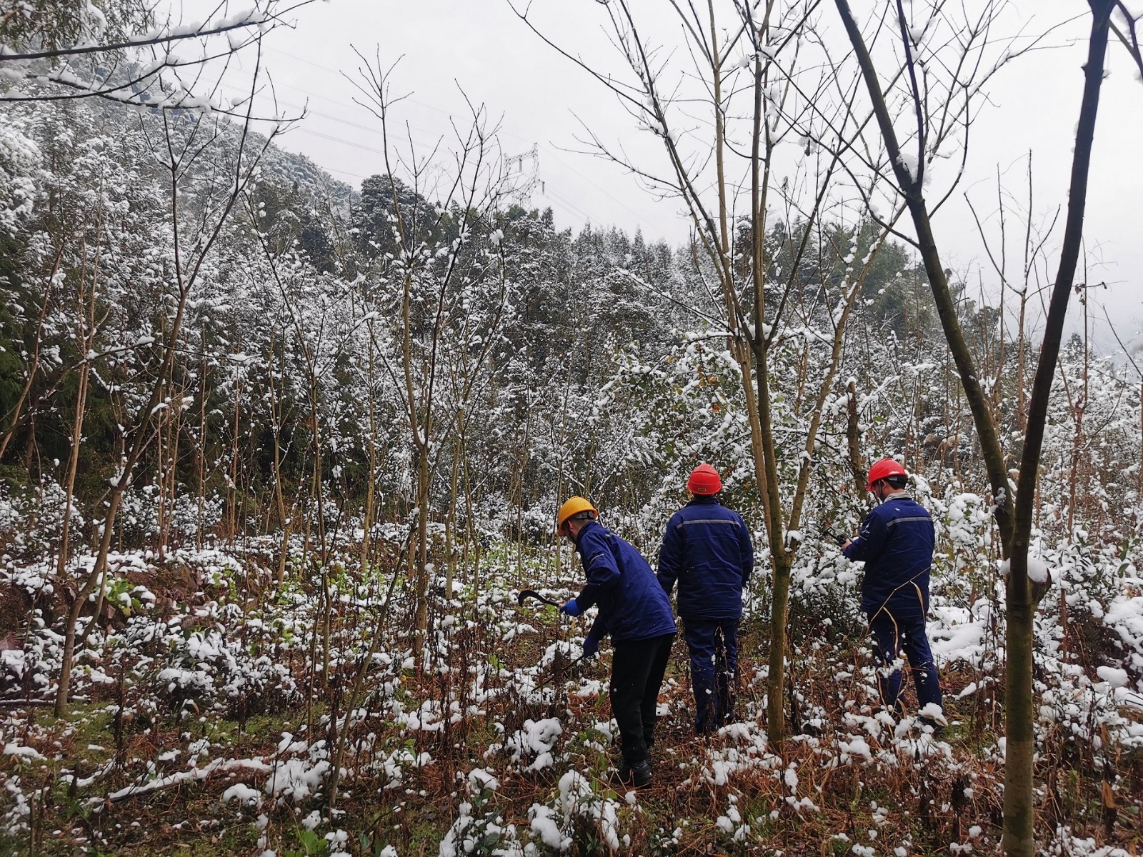 1月23日,天彭電力制定詳細(xì)的樹障清理計(jì)劃。巡線員手持砍刀,翻山越嶺,負(fù)重前行,踩著嘎吱作響的積雪,迎著刀割般的寒風(fēng),迅速開始對(duì)110kV鳳回線、10kV沙橋線、鳳通線等線路設(shè)備進(jìn)行巡查,對(duì)倒伏在線路的竹樹進(jìn)行“圍剿”,共清理樹枝、竹子共110余棵,現(xiàn)場(chǎng)巡線員盡管臉凍得通紅、手凍得僵硬、腳凍得麻木,仍有條不紊地開展工作,經(jīng)過一天的辛勤巡檢,線路和設(shè)備均運(yùn)行正常。