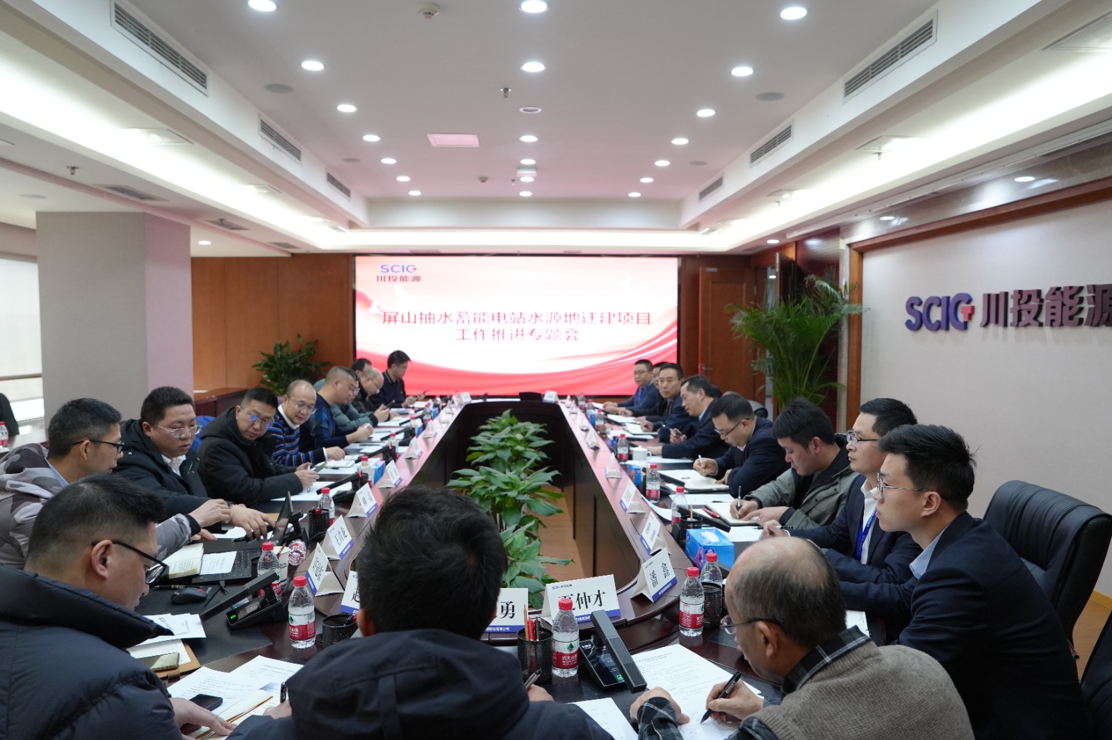 2023年12月,川投能源、雅礱江公司、葛洲壩集團(tuán)組成的聯(lián)合體與屏山縣人民政府簽訂屏山抽水蓄能電站項(xiàng)目投資合作協(xié)議。為扎實(shí)推進(jìn)項(xiàng)目水源地遷建工作,加快項(xiàng)目核準(zhǔn)開(kāi)工進(jìn)度,2024年1月25日,川投能源組織召開(kāi)屏山抽水蓄能電站水源地遷建項(xiàng)目工作推進(jìn)專題會(huì)。攀新能源公司黨支部書(shū)記、董事長(zhǎng)王行仁主持會(huì)議。屏山縣發(fā)改局、環(huán)保局、水利局、自然資源局、書(shū)樓鎮(zhèn)政府、中國(guó)電建集團(tuán)成都勘測(cè)設(shè)計(jì)研究院、中國(guó)市政工程西南設(shè)計(jì)研究總院、四川省生態(tài)環(huán)境科學(xué)研究院、水發(fā)規(guī)劃設(shè)計(jì)有限公司(山東)相關(guān)人員出席會(huì)議。