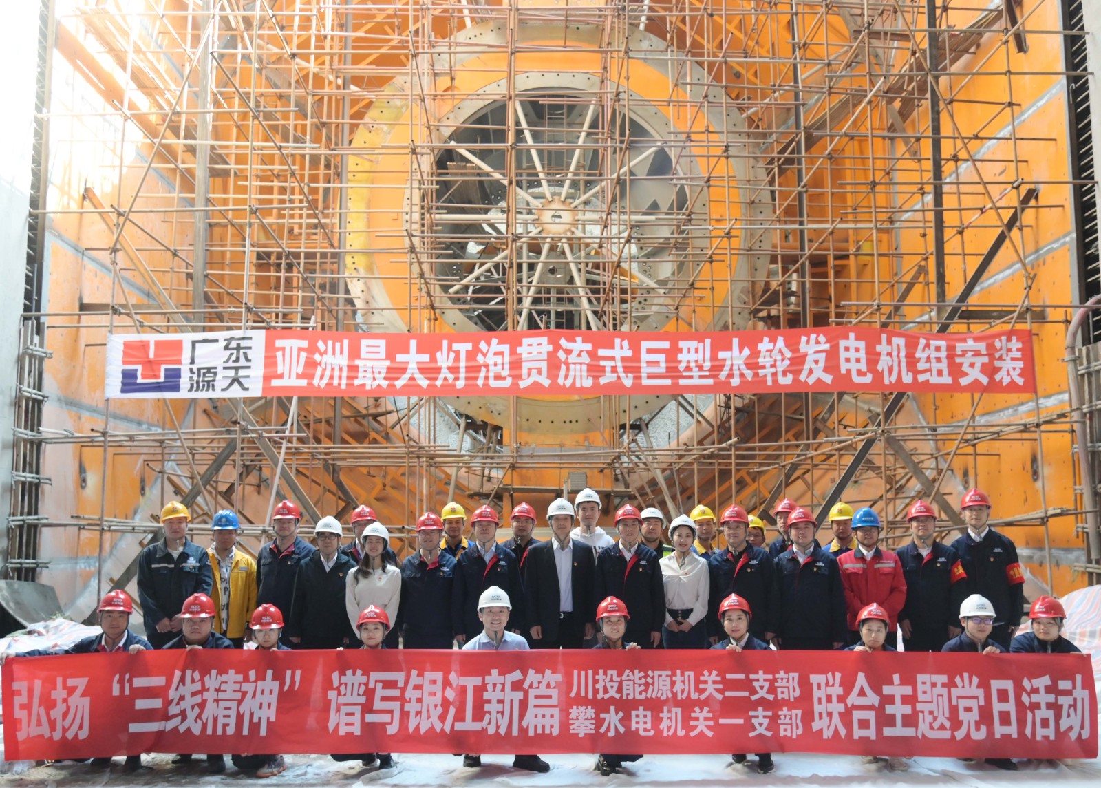 在銀江水電站亞洲最大燈泡貫流式巨型水輪發(fā)電機組安裝現(xiàn)場,川投能源機關(guān)二支部書記李睿講授了工地微黨課《承諾》,與大家一起重溫銀江水電站建設(shè)過程中的感人故事?;顒又校煨傆猛ㄋ滓锥恼Z言,為現(xiàn)場同志介紹了銀江水電站的建設(shè)特點、施工情況和下一步工程建設(shè)計劃,并號召全體黨員和團員青年要圍繞“保一爭二”提前發(fā)電重要目標(biāo),團結(jié)一心、勇挑重?fù)?dān)、善作善成。