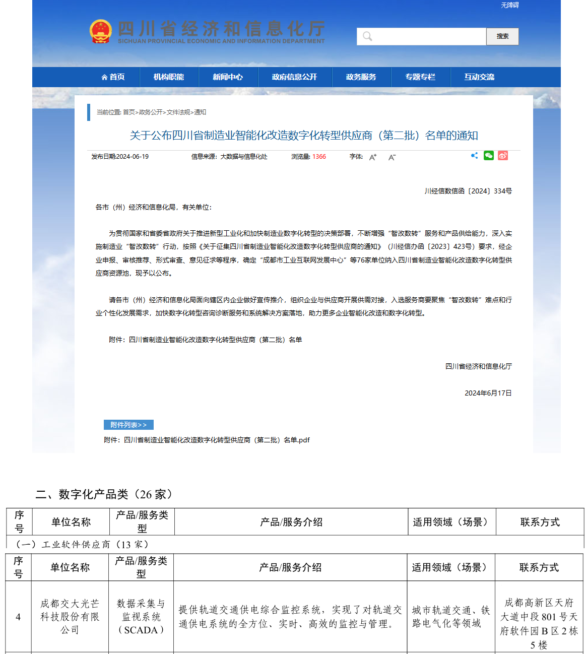 2024年6月19日,四川省經(jīng)濟和信息化廳網(wǎng)站公布四川省制造業(yè)智能化改造數(shù)字化轉(zhuǎn)型供應(yīng)商(第二批)名單,交大光芒作為數(shù)字化產(chǎn)品類工業(yè)軟件供應(yīng)商入選四川省制造業(yè)智能化改造數(shù)字化轉(zhuǎn)型供應(yīng)商資源池。