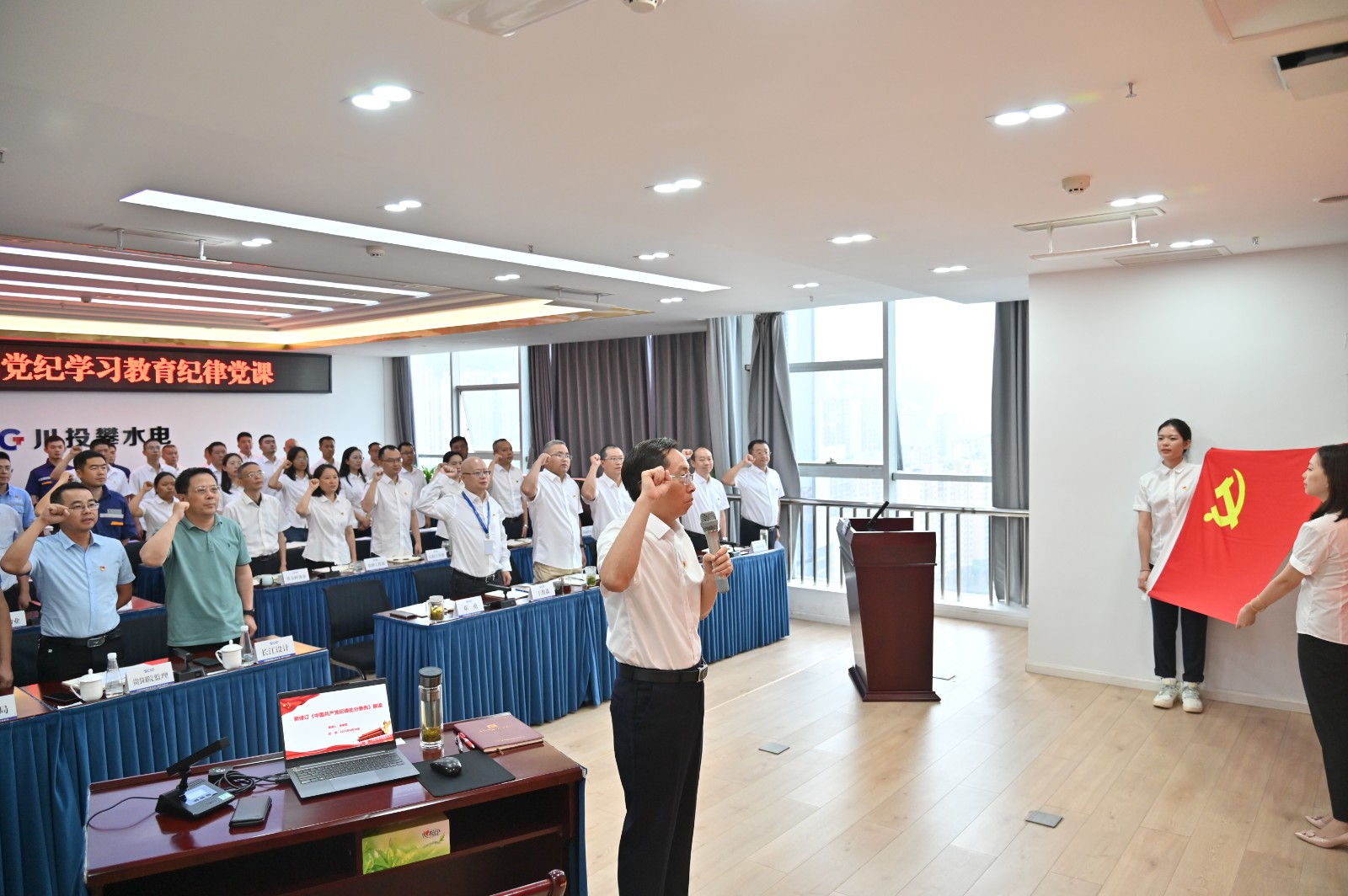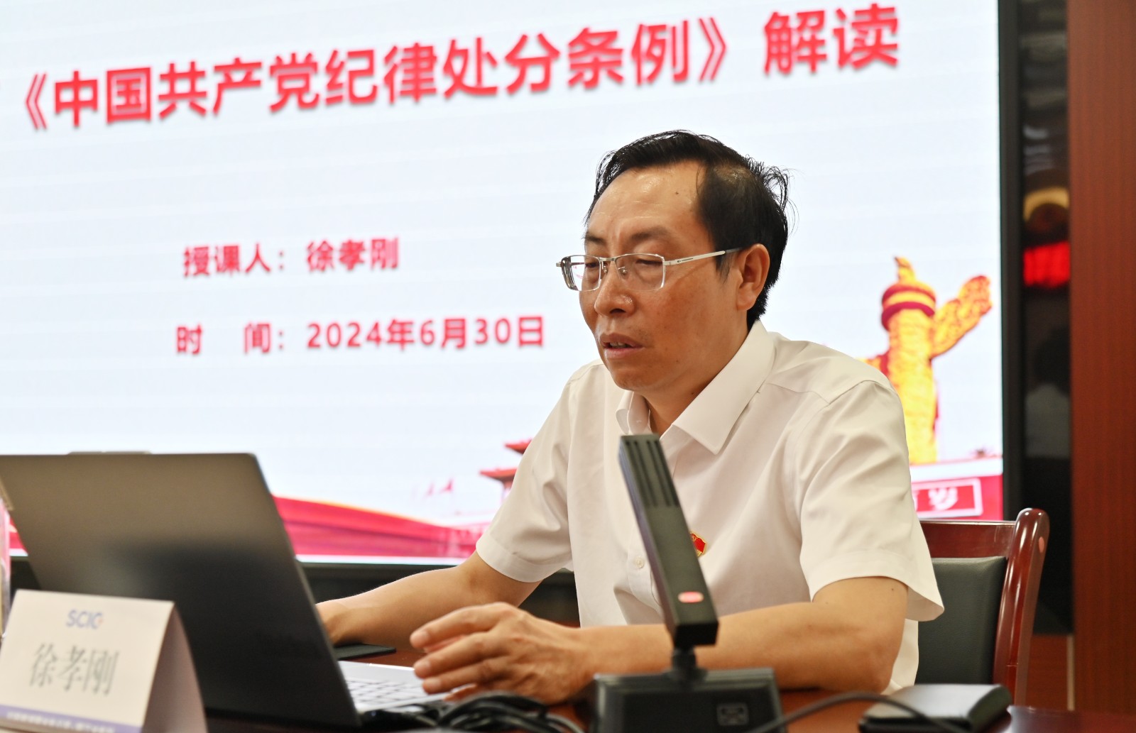 在全黨開展黨紀(jì)學(xué)習(xí)教育和黨的103歲生日來臨之際,按照川投能源黨委和攀水電黨總支的安排部署,6月30日上午,川投能源副總經(jīng)理、攀水電公司黨總支書記、董事長(zhǎng)徐孝剛講授了黨紀(jì)學(xué)習(xí)教育紀(jì)律黨課并宣講省委十二屆五次全會(huì)精神,公司全體員工、參建單位負(fù)責(zé)人及黨員代表共計(jì)50余人參加。