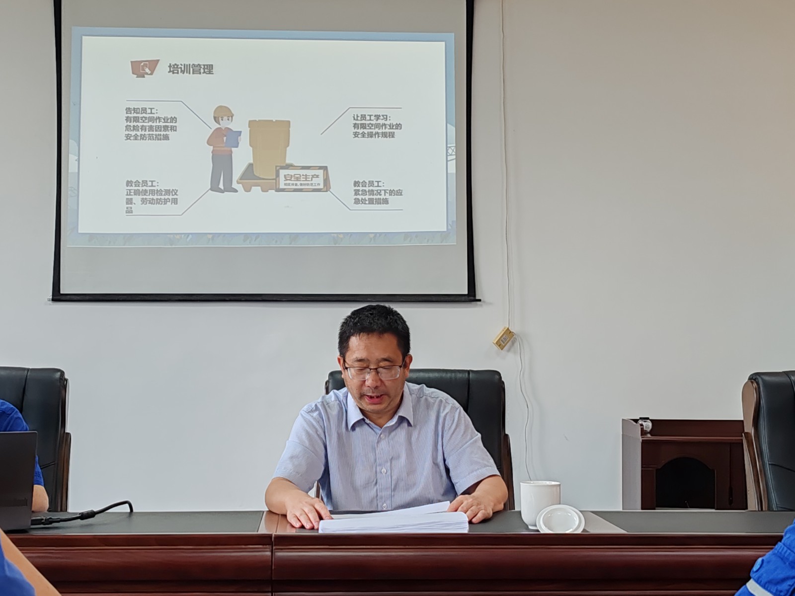 培訓(xùn)現(xiàn)場(chǎng),王偉結(jié)合電廠實(shí)際情況,重點(diǎn)圍繞有限空間場(chǎng)所和風(fēng)險(xiǎn)辨識(shí)、作業(yè)安全要點(diǎn)和安全管控、安全防護(hù)設(shè)備和應(yīng)急處置等內(nèi)容進(jìn)行全面系統(tǒng)講解,以案說(shuō)法,讓參訓(xùn)人員深刻認(rèn)識(shí)到加強(qiáng)有限空間作業(yè)管理的重要性,樹牢“切忌盲目施救”的應(yīng)急救援意識(shí),為最大限度減少有限空間作業(yè)事故發(fā)生夯實(shí)理論基礎(chǔ)。