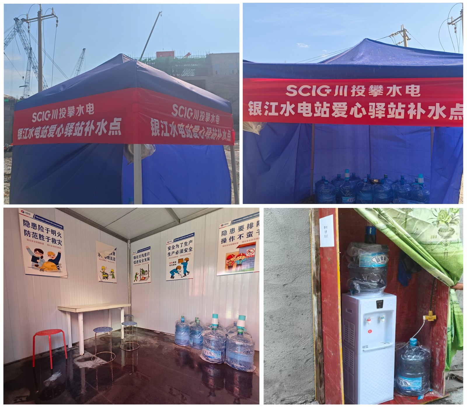鑒于近期天氣炎熱,持續(xù)高溫給一線工人作業(yè)帶來了巨大挑戰(zhàn),為解決一線工人在施工過程中“飲水難”的問題,公司在銀江水電站壩頂、GIS樓、副廠房、魚道、溢流壩等施工人員密集的部位建立了五處“愛心補(bǔ)水站”,完善送水補(bǔ)水機(jī)制,為奮戰(zhàn)在烈日下的工友們送去了絲絲涼意與深切關(guān)懷,此舉為大家解決了實際困難,贏得了工友們的廣泛贊譽(yù)。