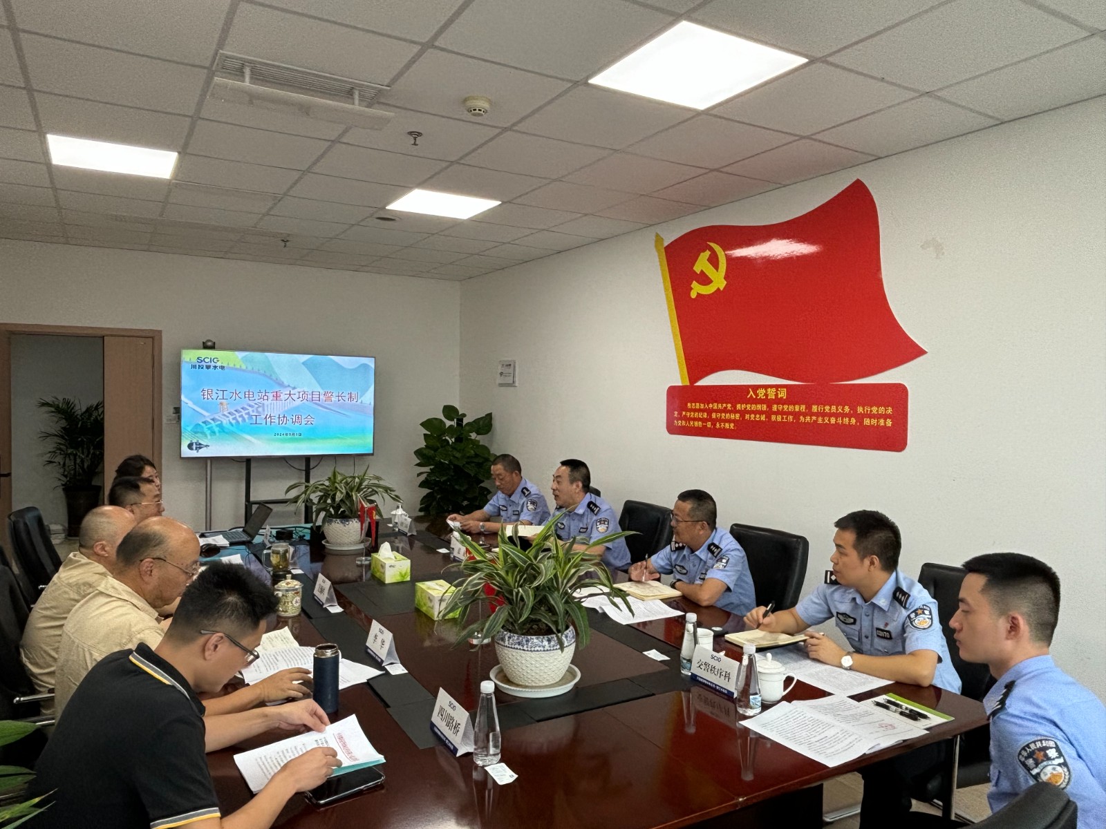 為保障銀江水電站重大項目安全順利推進(jìn),護(hù)航服務(wù)攀枝花市高質(zhì)量發(fā)展建設(shè)共同富裕試驗(yàn)區(qū),攀枝花市公安局與攀水電公司建立了銀江水電站“重大項目警長制”,9月3日上午,市公安局機(jī)關(guān)黨委副書記張征帶隊赴公司召開工作協(xié)調(diào)會議。攀水電公司黨總支副書記、總經(jīng)理、聯(lián)絡(luò)工作組組長吳巍嶼出席會議,交警支隊辦公室、秩序科、三大隊及公司相關(guān)部門等10余人參加會議。