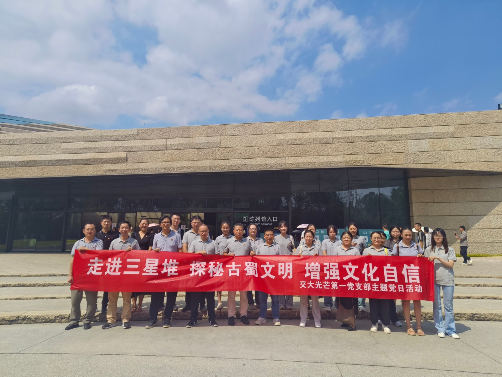 為深入學(xué)習(xí)習(xí)近平新時(shí)代中國(guó)特色社會(huì)主義思想,貫徹落實(shí)習(xí)近平文化思想和習(xí)總書記來(lái)川視察重要指示精神,深化對(duì)“兩個(gè)結(jié)合”的認(rèn)識(shí),進(jìn)一步弘揚(yáng)傳承中華優(yōu)秀傳統(tǒng)文化,增強(qiáng)文化自信,凝聚精神力量,9月11日,交大光芒第一黨支部赴廣漢三星堆博物館開展主題黨日活動(dòng)。