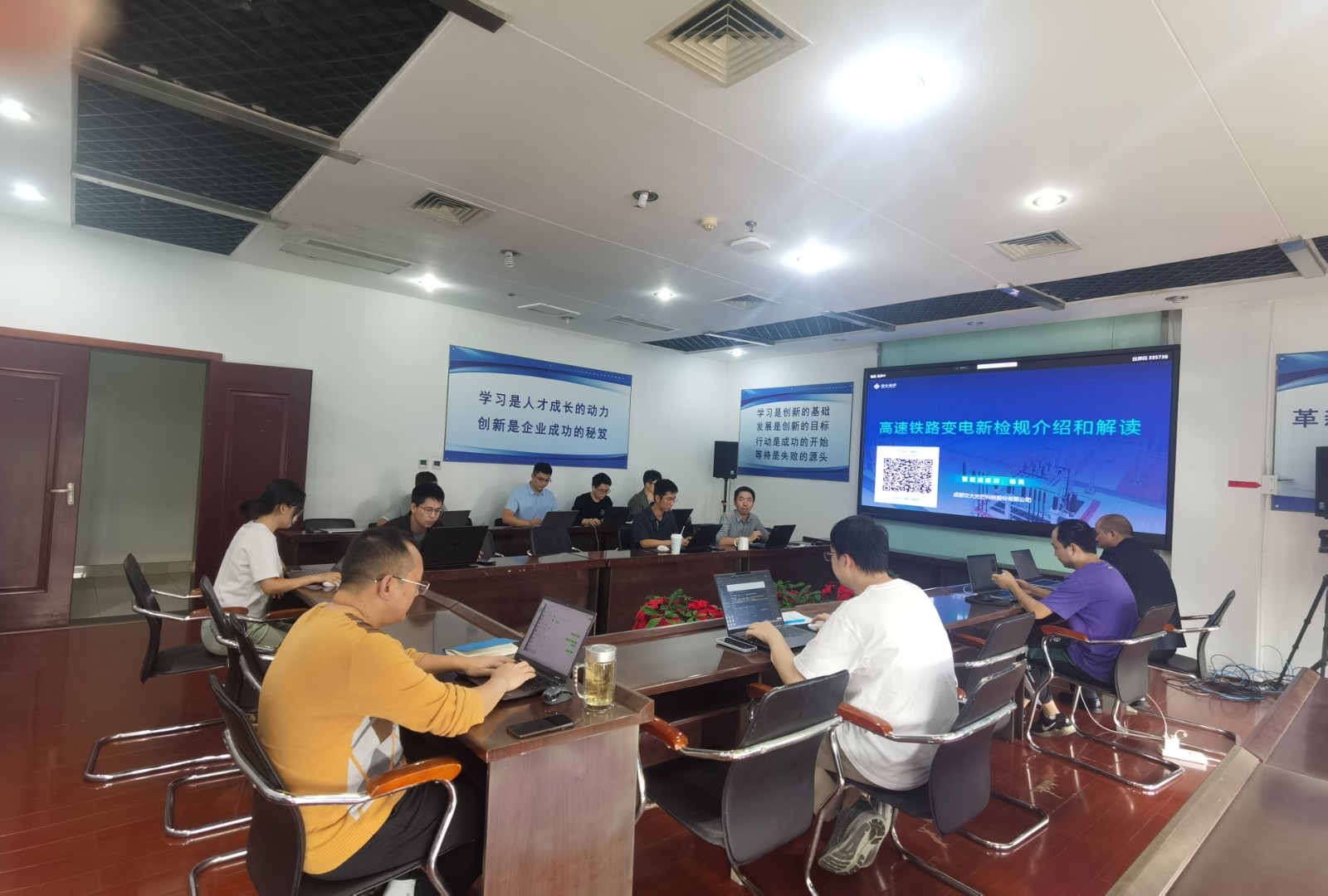 楊昊詳細(xì)解讀了新檢規(guī)的出臺背景、具體內(nèi)容和重大意義。他指出,新檢規(guī)落實(shí)國鐵集團(tuán)黨組關(guān)于牽引變電所無人化的工作部署,適應(yīng)信息化、智能化發(fā)展進(jìn)程,將牽引變電所運(yùn)行管理、運(yùn)維修試、應(yīng)急保障等規(guī)則予以完善,是交大光芒高鐵供電智能運(yùn)維系列產(chǎn)品的根本遵循。他強(qiáng)調(diào),研發(fā)中心要深入研究對標(biāo)新檢規(guī),對現(xiàn)有運(yùn)維產(chǎn)品進(jìn)一步智能升級改造,研發(fā)更符合時(shí)代需求的、更加智慧的實(shí)時(shí)監(jiān)測和科學(xué)診斷系統(tǒng),以新質(zhì)生產(chǎn)力賦能中國高鐵進(jìn)一步提升供電可靠性。