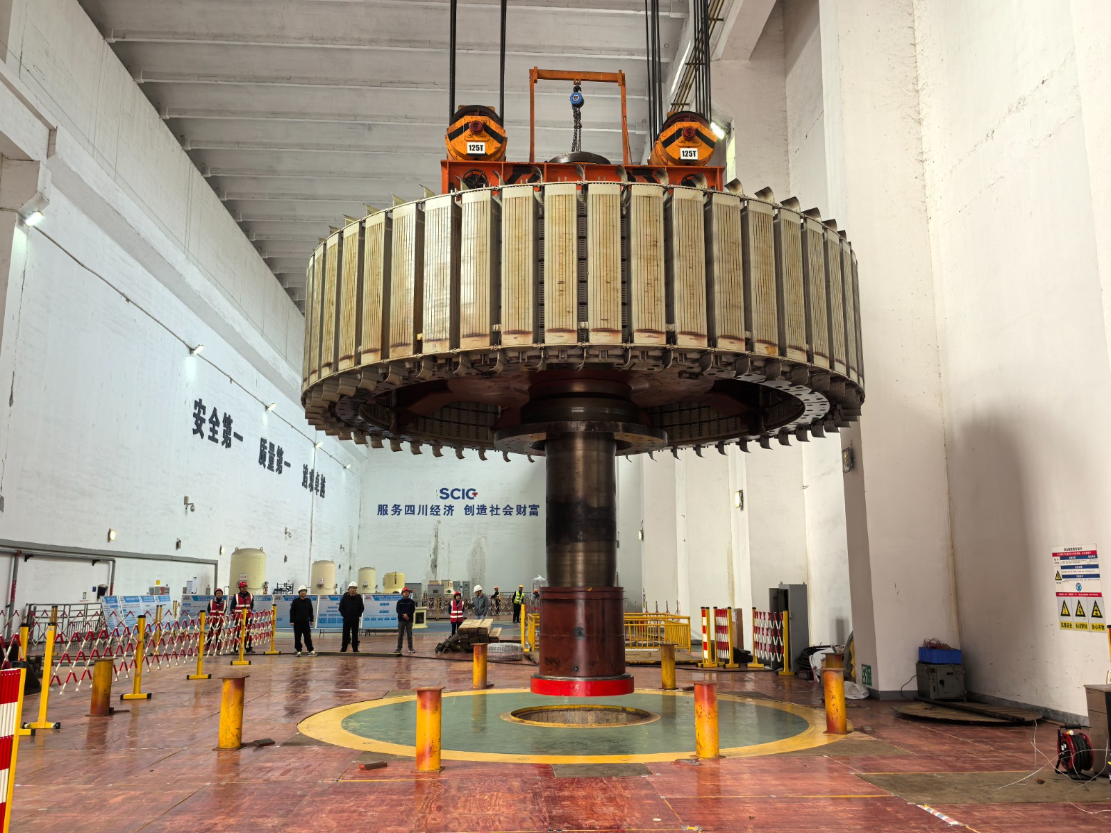 近日,經過自主檢修團隊的連續(xù)奮戰(zhàn),川投電力所屬百花灘電廠2號發(fā)電機組轉子順利吊出,標志著此次檢修工作首個重大關鍵節(jié)點取得階段性勝利。川投電力黨委委員、副總經理王偉,副總經理陳云明及相關部門負責人現(xiàn)場指導工作。