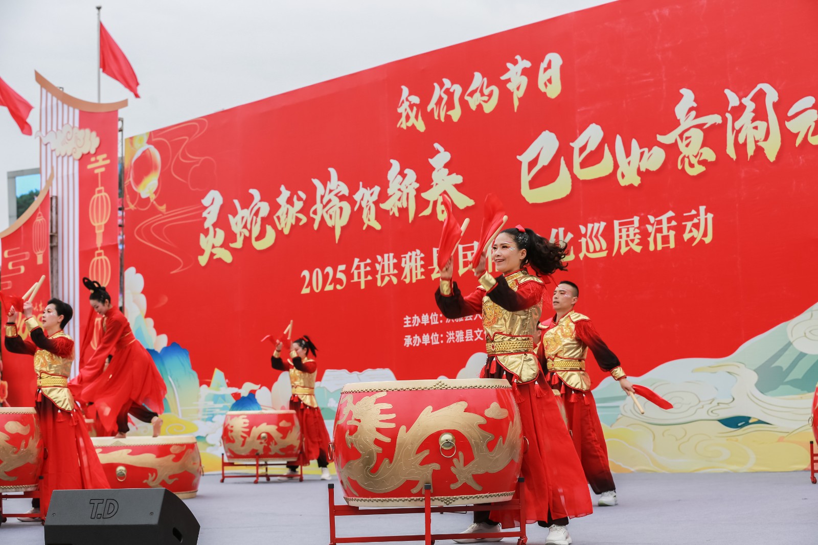 洪雅民俗文化巡展活動(dòng)是洪雅縣每年春節(jié)期間的傳統(tǒng)文化品牌,表演節(jié)目豐富多彩、精彩紛呈,深受全縣人民喜愛。活動(dòng)當(dāng)日,民俗文化巡游隊(duì)伍從三彩廣場(chǎng)出發(fā),一直到洪雅廣場(chǎng),現(xiàn)場(chǎng)人頭攢動(dòng),熱鬧非凡。隨著激昂的鼓點(diǎn)響起,大鼓隊(duì)員們手中的鼓槌上下翻飛,富有節(jié)奏感地敲擊著大鼓。磅礴的氣勢(shì)、靈動(dòng)的韻律、美妙的舞姿瞬間點(diǎn)燃了現(xiàn)場(chǎng)氣氛,吸引了眾多市民駐足觀看、拍手稱贊。