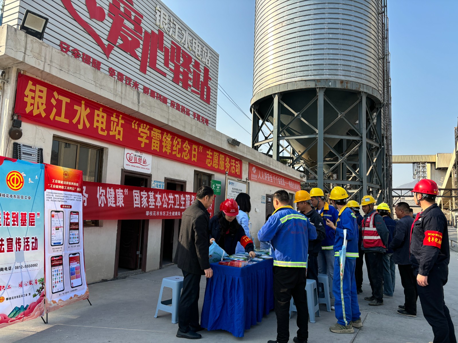 活動(dòng)現(xiàn)場(chǎng),銀江工地愛心驛站變身“時(shí)尚沙龍”?,攀枝花市美容美發(fā)行業(yè)協(xié)會(huì)10名專業(yè)理發(fā)師現(xiàn)場(chǎng)打造“10分鐘快剪”服務(wù)圈,公司工會(huì)同步提供消毒濕巾、免洗洗手液,確保大家剪完發(fā),清清爽爽上工去;銀江鎮(zhèn)衛(wèi)生院創(chuàng)新推出“移動(dòng)健康管家”服務(wù),由4名醫(yī)務(wù)人員分別進(jìn)行血糖、血壓測(cè)量,為居住半年以上時(shí)間的居民建立健康檔案,簽約家庭醫(yī)生服務(wù),為慢性病患者建檔,更有中醫(yī)把脈問診開展健康咨詢解答等;安全健康知識(shí)“沉浸教學(xué)”?,多名志愿者為一線建設(shè)者開展中暑、熱射病、春季流感預(yù)防等職業(yè)健康治知識(shí)宣傳,發(fā)放健康教育宣傳資料,為職工發(fā)放《安全生產(chǎn)法》《四川省安全生產(chǎn)條例》《安全生產(chǎn)與勞動(dòng)保護(hù)職工學(xué)習(xí)手冊(cè)》《職業(yè)病防治宣傳手冊(cè)》《應(yīng)急逃生知識(shí)宣傳冊(cè)》等資料1000余份,將雷鋒精神轉(zhuǎn)化為常態(tài)化服務(wù),?贏得了一線職工的一致好評(píng)。?