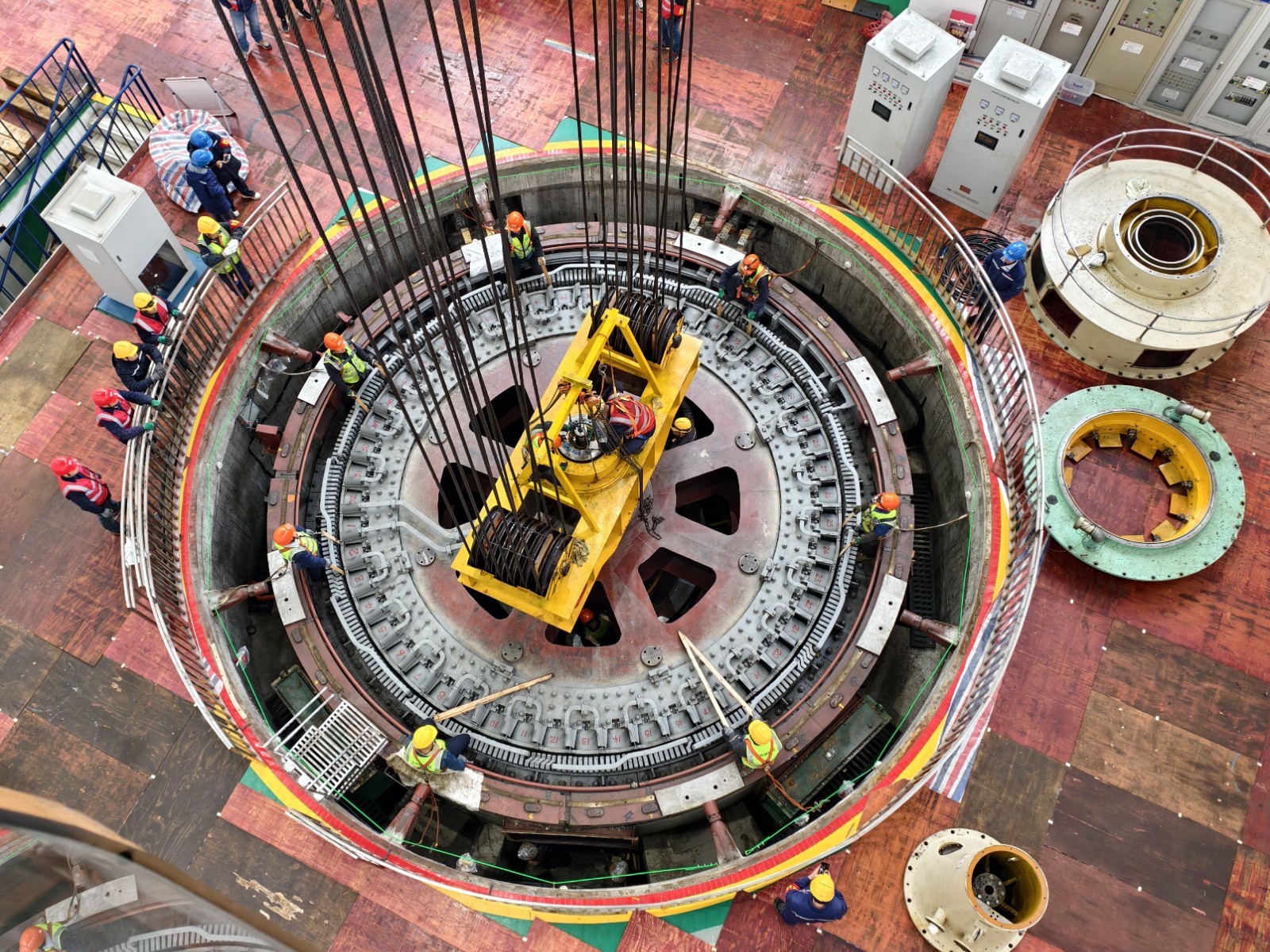 “這‘硬骨頭’我來(lái)啃,請(qǐng)組織放心,堅(jiān)決完成任務(wù)”。4月16日,轉(zhuǎn)子回裝過(guò)程中,老黨員宋加行發(fā)揚(yáng)新時(shí)代工匠精神,主動(dòng)承擔(dān)高風(fēng)險(xiǎn)、高技術(shù)含量的司索崗位,他哨音清晰、手勢(shì)果斷,與起重司機(jī)配合如“榫卯銜接”。檢修團(tuán)隊(duì)成員分工明確、協(xié)同配合,確保轉(zhuǎn)子回裝工作按期順利完成。