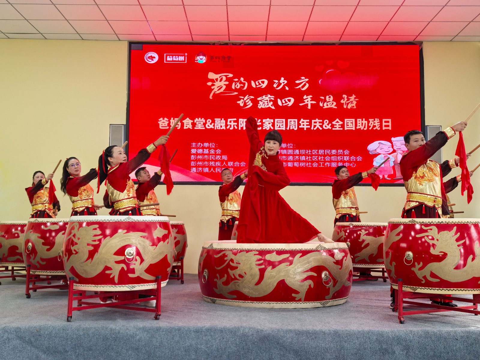 5月16日,在彭州市通濟(jì)鎮(zhèn)圓通壩社區(qū)“爸媽食堂”4周年慶暨全國助殘日活動現(xiàn)場,天彭電力理論宣講隊隊員以一場氣勢恢宏的非遺大鼓《盛世凱歌》拉開慶典帷幕,不僅展現(xiàn)了國企參與基層治理的創(chuàng)新實踐,更奏響了文化惠民與鄉(xiāng)村振興的協(xié)奏曲。