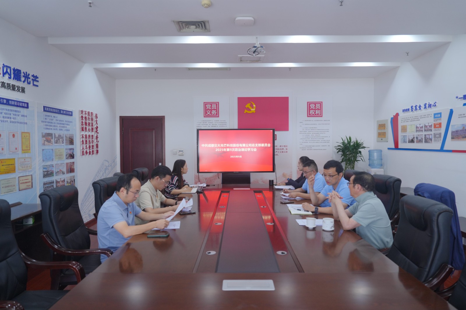 9月19日,交大光芒黨總支召開(kāi)2025年第9次政治理論學(xué)習(xí)會(huì)。會(huì)議由黨總支書記、常務(wù)副總經(jīng)理王濤主持,黨總支委員、經(jīng)營(yíng)班子成員參加學(xué)習(xí)。