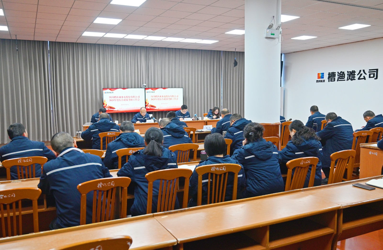 近日,川投電力黨委副書記、總經(jīng)理蔡承德帶隊到槽漁公司開展2025年度綜合業(yè)績考核??己藭纱ㄍ峨娏k公室主任李天宏主持,考核組成員、槽漁灘公司領(lǐng)導(dǎo)班子成員、中層正職干部及部分職工代表參加會議。
