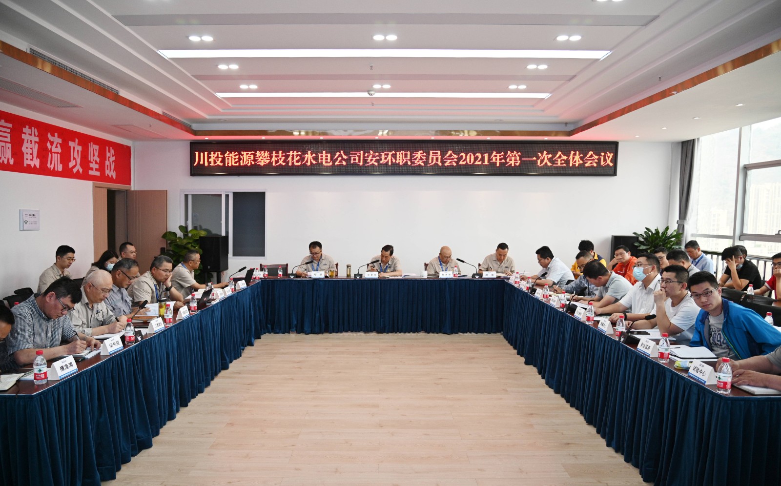 為深入貫徹落實(shí)習(xí)近平總書記關(guān)于新時(shí)代安全發(fā)展理念,踐行綠色環(huán)保發(fā)展新理念,落實(shí)省委第八巡視組對(duì)川投集團(tuán)巡視回頭看舉一反三查找問題和整改要求,以及川投集團(tuán)、川投能源的安全環(huán)保各項(xiàng)工作要求,近日川投能源攀水電公司組織召開了安環(huán)職委員會(huì)2021年第一次全體會(huì)議。會(huì)議由公司黨總支副書記、總經(jīng)理、安環(huán)職委員會(huì)主任蔡承德主持,安環(huán)職委員會(huì)委員、各參建單位項(xiàng)目部主要負(fù)責(zé)人出席了會(huì)議,參建單位安全生產(chǎn)管理人員及安環(huán)職委員會(huì)辦公室人員列席會(huì)議。