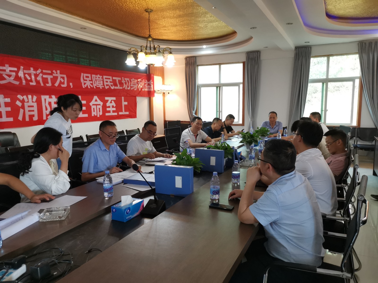 會議首先由攀水電公司計劃合同部經(jīng)理張興文匯報銀江水電站工程基本情況,葛洲壩路橋項目部副經(jīng)理周長渝匯報銀江水電站右岸壩頂以上邊坡開挖支護工程基本情況,重點介紹了本項目農(nóng)民工實名制、工資支付方式、周期及支付總額等,并向檢查組展示了相關(guān)憑證材料。核查組成員在資料核查過程中,就葛洲壩路橋項目部提供的農(nóng)民工工資支付相關(guān)資料提出詢問,張興文、周長渝等人逐一進(jìn)行了解答。