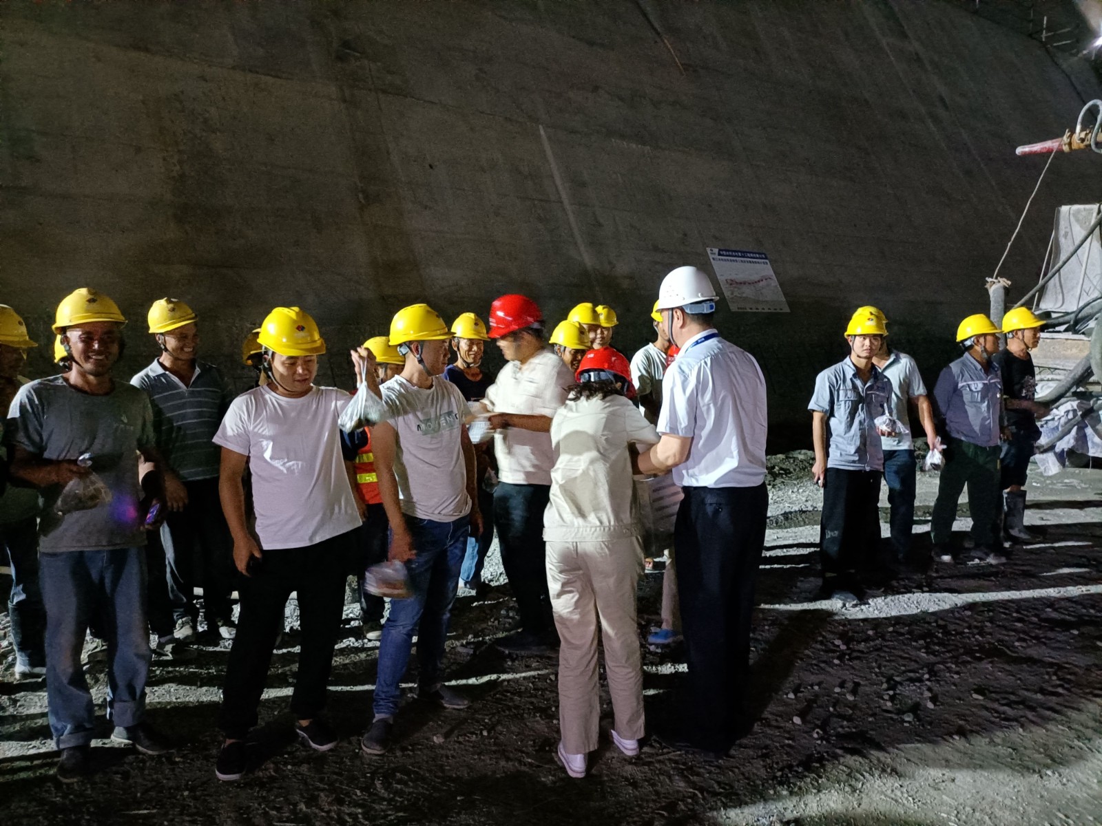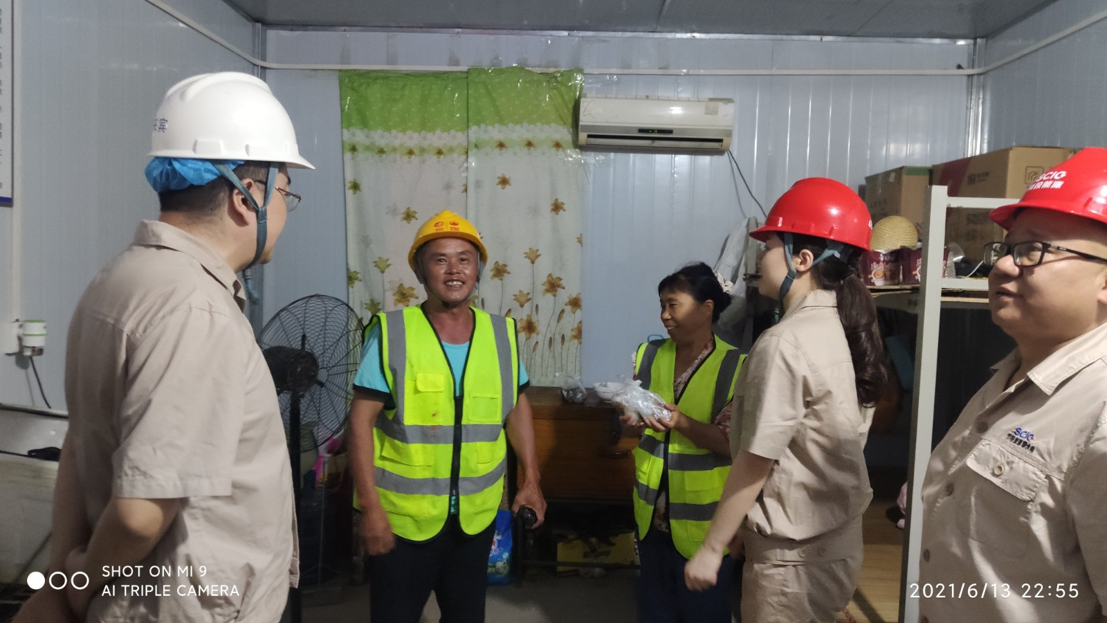 6月13日端午節(jié)前夕深夜,公司值班領(lǐng)導(dǎo)、黨總支委員、董事會秘書、工會主席鄧勇,總經(jīng)理助理唐伽帶領(lǐng)值班人員,對銀江水電站工地現(xiàn)場防洪度汛值班點位及施工現(xiàn)場進行了檢查;公司志愿者服務(wù)隊共計10余人對節(jié)日期間堅守在銀江水電站工地夜間施工的一線人員進行了慰問。