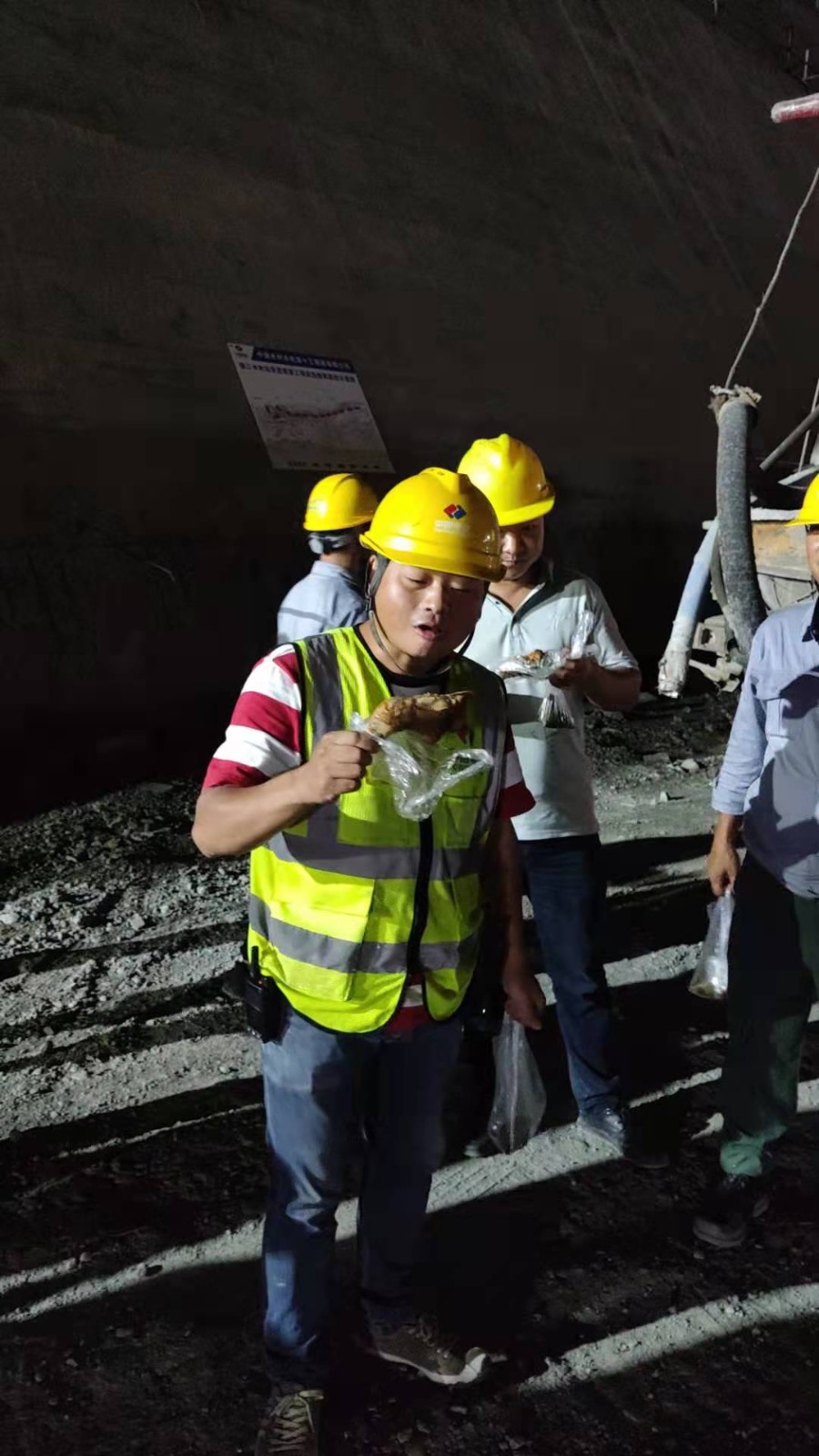當(dāng)日下午公司志愿者就開始忙活起來,鹵雞腿、包粽子、煮鹽蛋,采用流水線工作方式,把熱乎乎的雞腿、粽子、咸鴨蛋等進行分裝,方便工友在工地食用。晚上十點,慰問人員分成三組,分別前往康家溝渣場、銀江大橋、導(dǎo)流明渠、砂石骨料加工系統(tǒng)、混凝土生產(chǎn)系統(tǒng)等值班點位和夜間施工現(xiàn)場,將慰問品送到一線工友們的手中,對端午佳節(jié)期間依然奮戰(zhàn)在施工一線的人員致以親切問候,對大家咬緊牙關(guān)、不畏疲勞、迎難而上的工作態(tài)度表示充分肯定,對大家舍小家顧大家的奉獻(xiàn)精神致以崇高敬意,同時叮囑大家一定要注意身體健康和夜間施工安全。