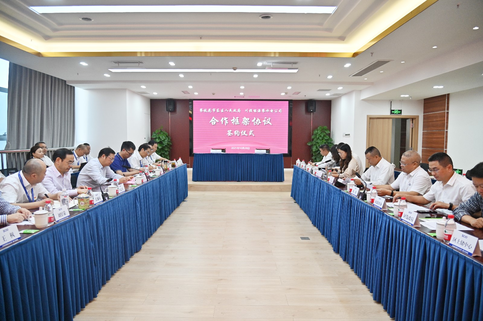 攀枝花市東區(qū)區(qū)級相關(guān)部門、銀江鎮(zhèn)主要負責人,川投集團經(jīng)營管理部劉厚榮、王楓,攀水電公司領(lǐng)導班子、各部門負責人參加簽約儀式。