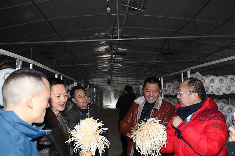 學(xué)習(xí)會后,在村支書邱洪的帶領(lǐng)下,大家來到了集中安置點,寬敞的道路和各具特色的鄉(xiāng)村小屋交相輝映,仿佛置身于一座旅游小鎮(zhèn)之中,大家沿路參觀嶄新而整齊的村屋,紛紛感嘆扶貧給曙光村帶來的翻天覆地的變化,喜氣洋洋的村民伸出了大拇指,為公司精準(zhǔn)扶貧點贊,喜悅之情溢于言表。在“曙光村食用菌基地”,大家聆聽著負(fù)責(zé)人詳細(xì)的講解,一邊觀摩大棚內(nèi)長勢喜人的金針菇,一邊親自動手采摘,邱書記講到食用菌基地自投產(chǎn)至今收入約160萬元,同時可創(chuàng)造勞務(wù)收入約36萬元,全村貧困戶年均增收5000多元,“不出村子就能掙錢”成為了當(dāng)?shù)卮迕窠蚪驑返赖脑掝}。